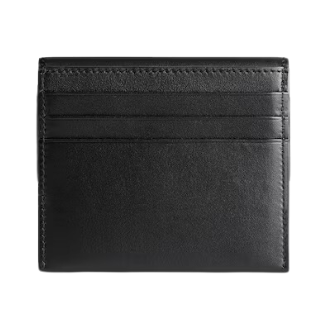 Dimensioni:● Larghezza: 10 cm● Altezza: 7 cm● Profondità: 0,5 cm Dettagli:● Materiale: Pelle di vitello● Colore: Nero● Chiusura: Nessuna● Logo: