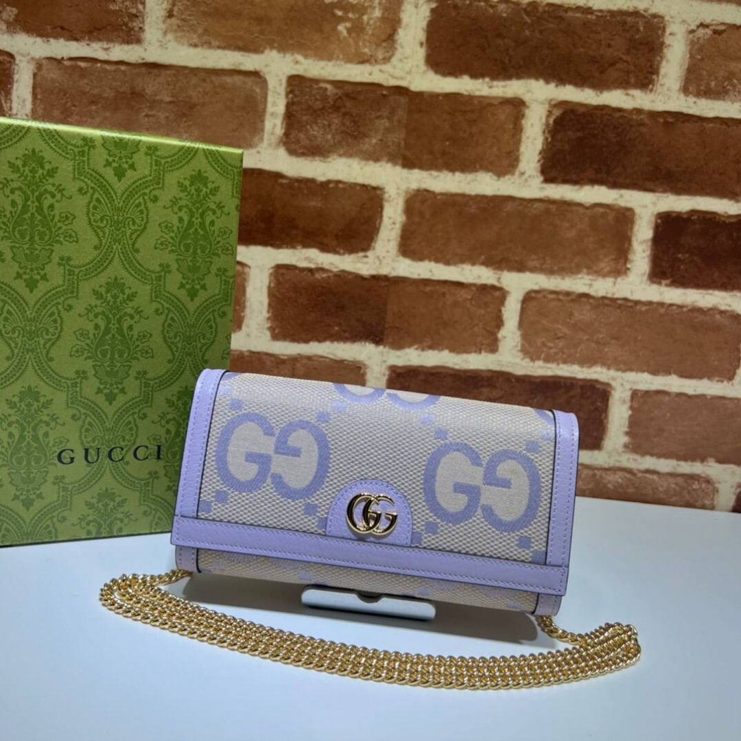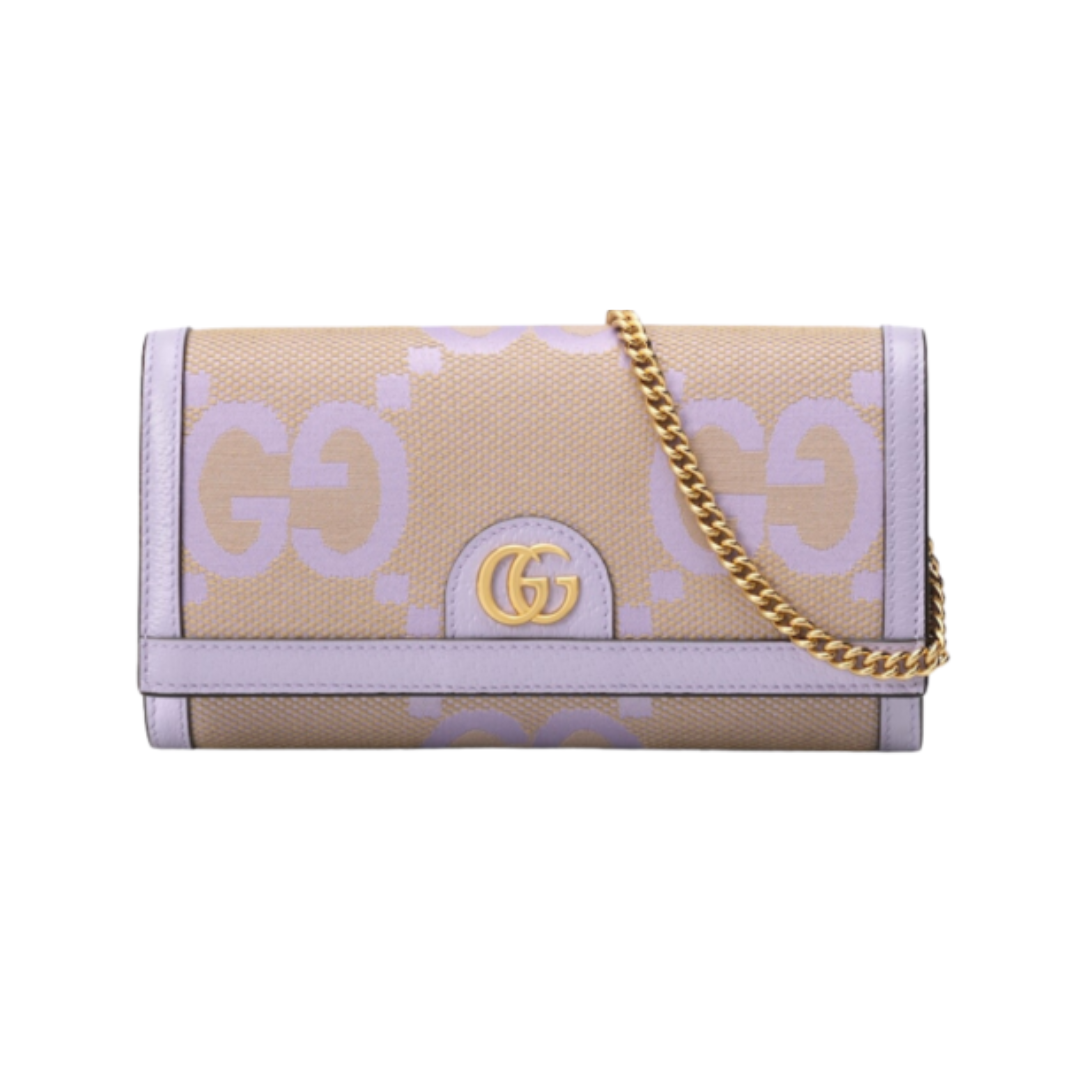 Portafoglio Gucci Ophidia Jumbo GG lilla/beige con catena 19 cm