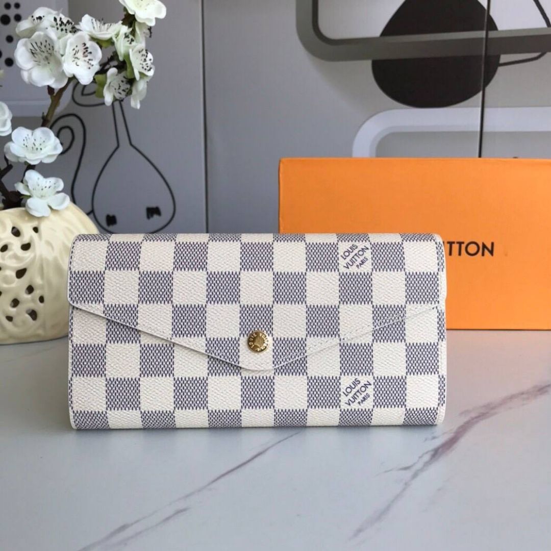 Portafoglio Louis Vuitton Sarah in tela Damier Azur 19 cm