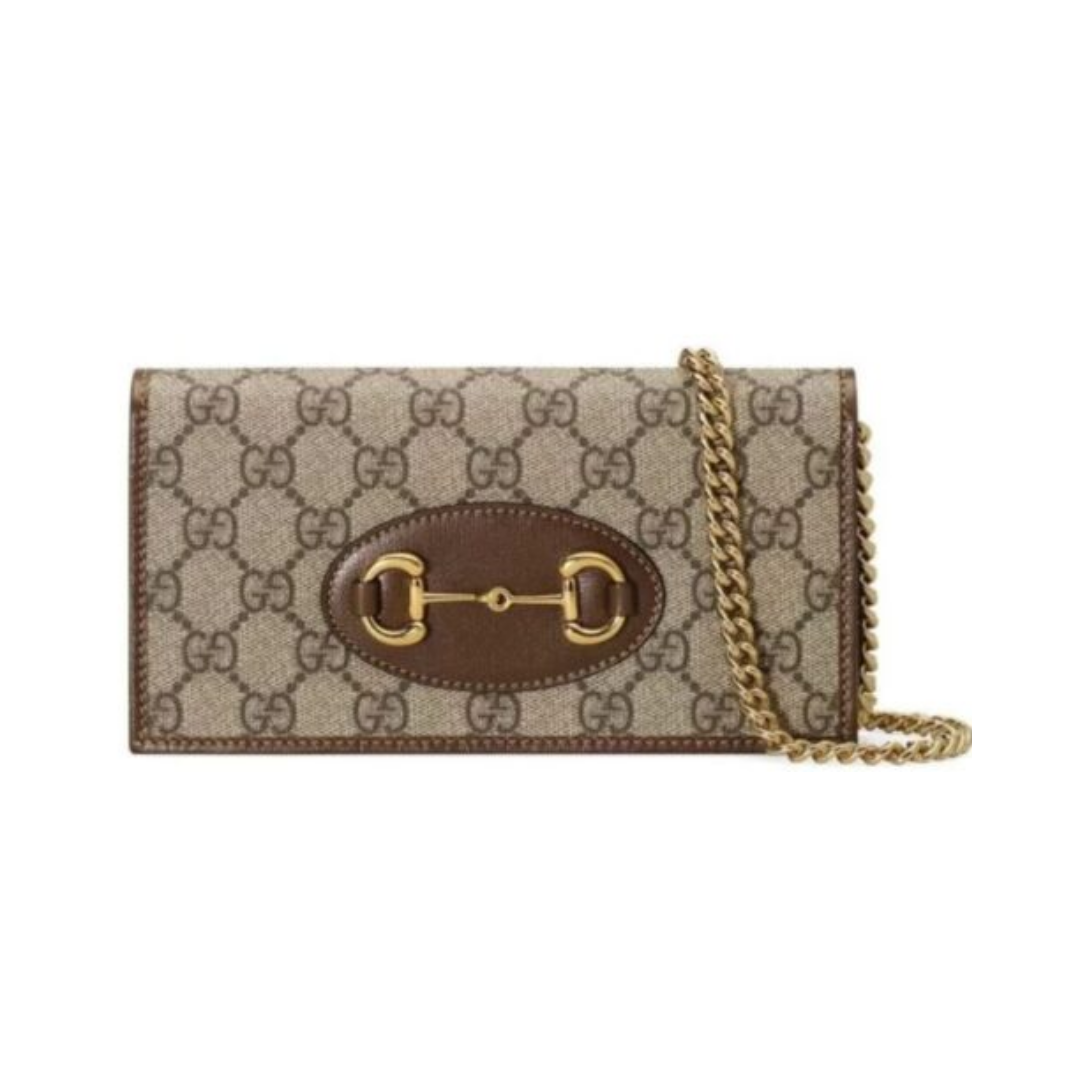 Portafoglio Gucci Horsebit 1955 in tela GG Supreme marrone 10 cm