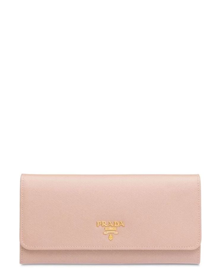 Portafoglio con catena Prada in pelle Saffiano rosa 18,7 cm