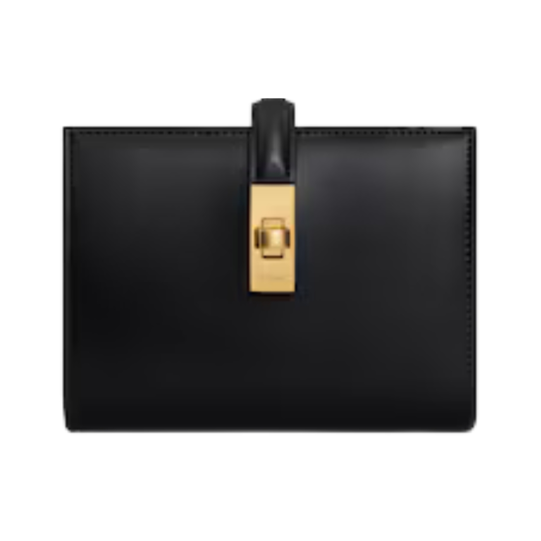 Dimensioni:● Larghezza: 17 cm● Altezza: 9 cm● Profondità: 1,5 cm Dettagli:● Materiale: Pelle Epsom● Colore: Nero● Chiusura: Patta con linguetta