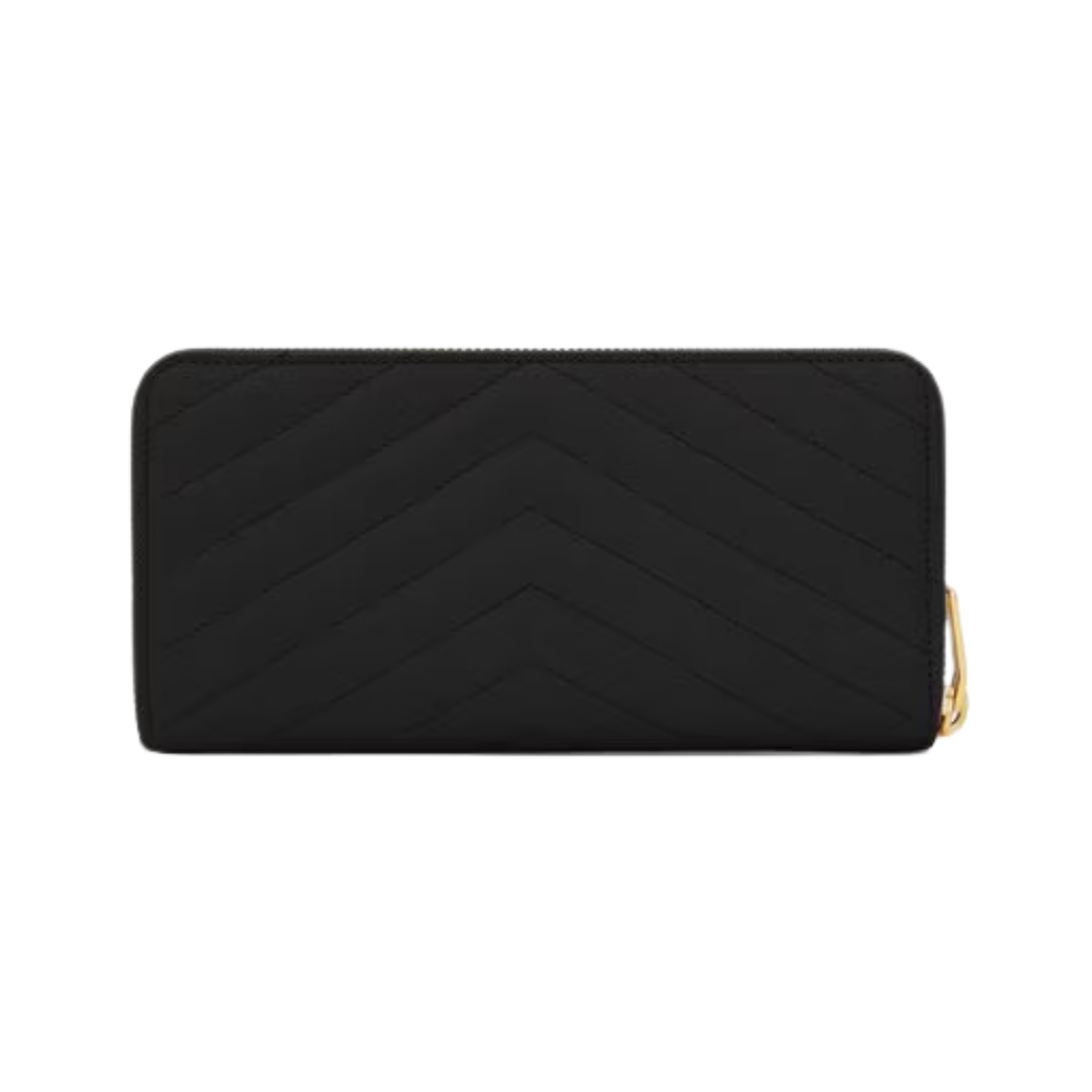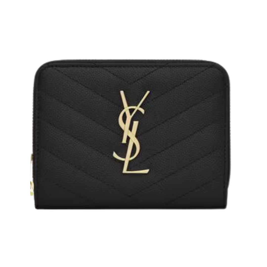 Dettagli:● Materiale: Pelle grain de poudre● Colore: Nero● Chiusura: Zip perimetrale● Logo: Monogram YSL dorato● Interno: Slot per carte e