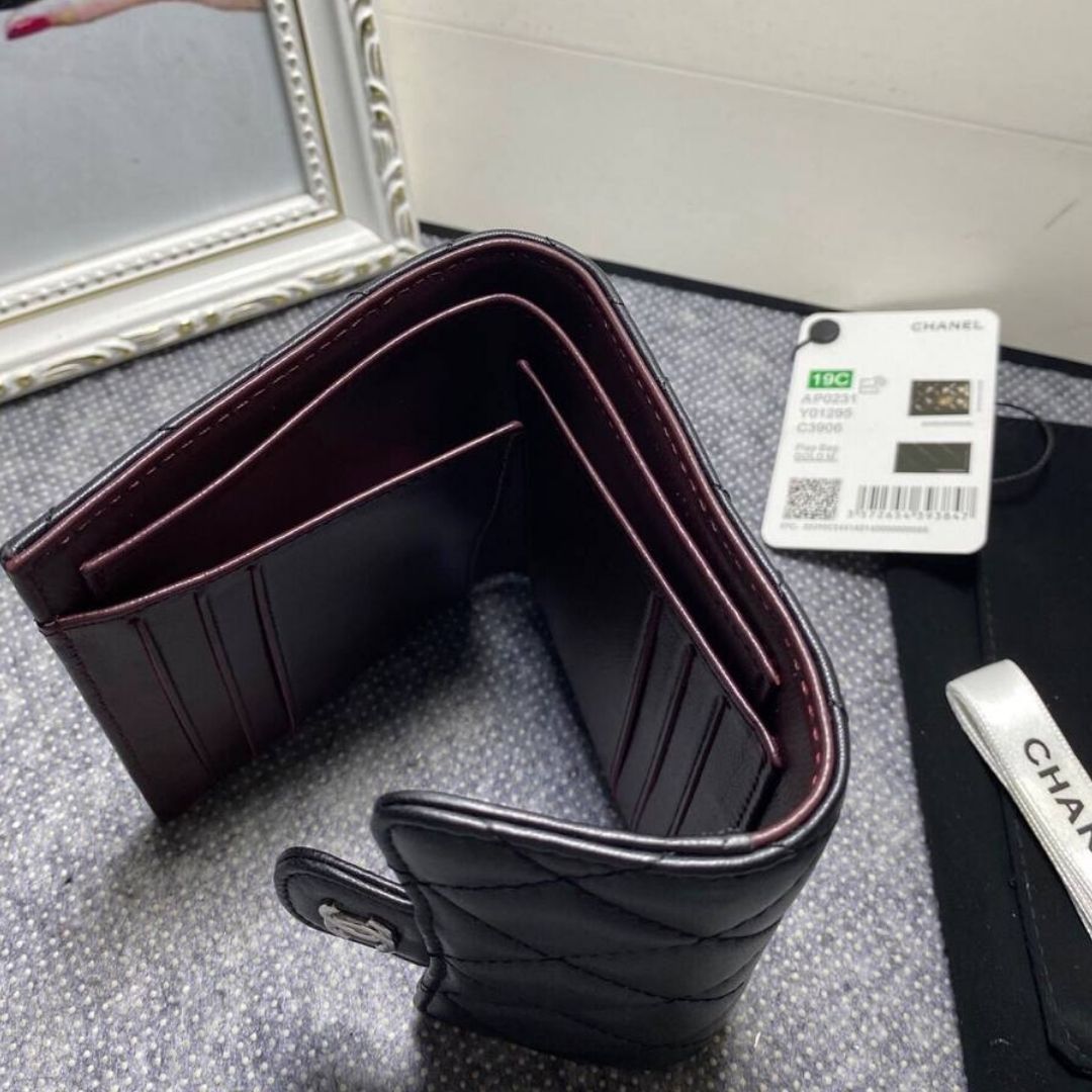 Portafoglio Chanel Classic in pelle nera con dettagli argento 10,5 cm