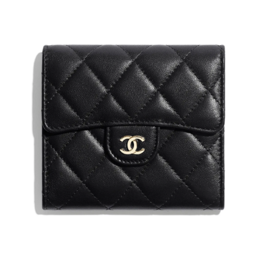 Portafoglio Chanel Classic in pelle nera con finiture dorate 10,5 cm
