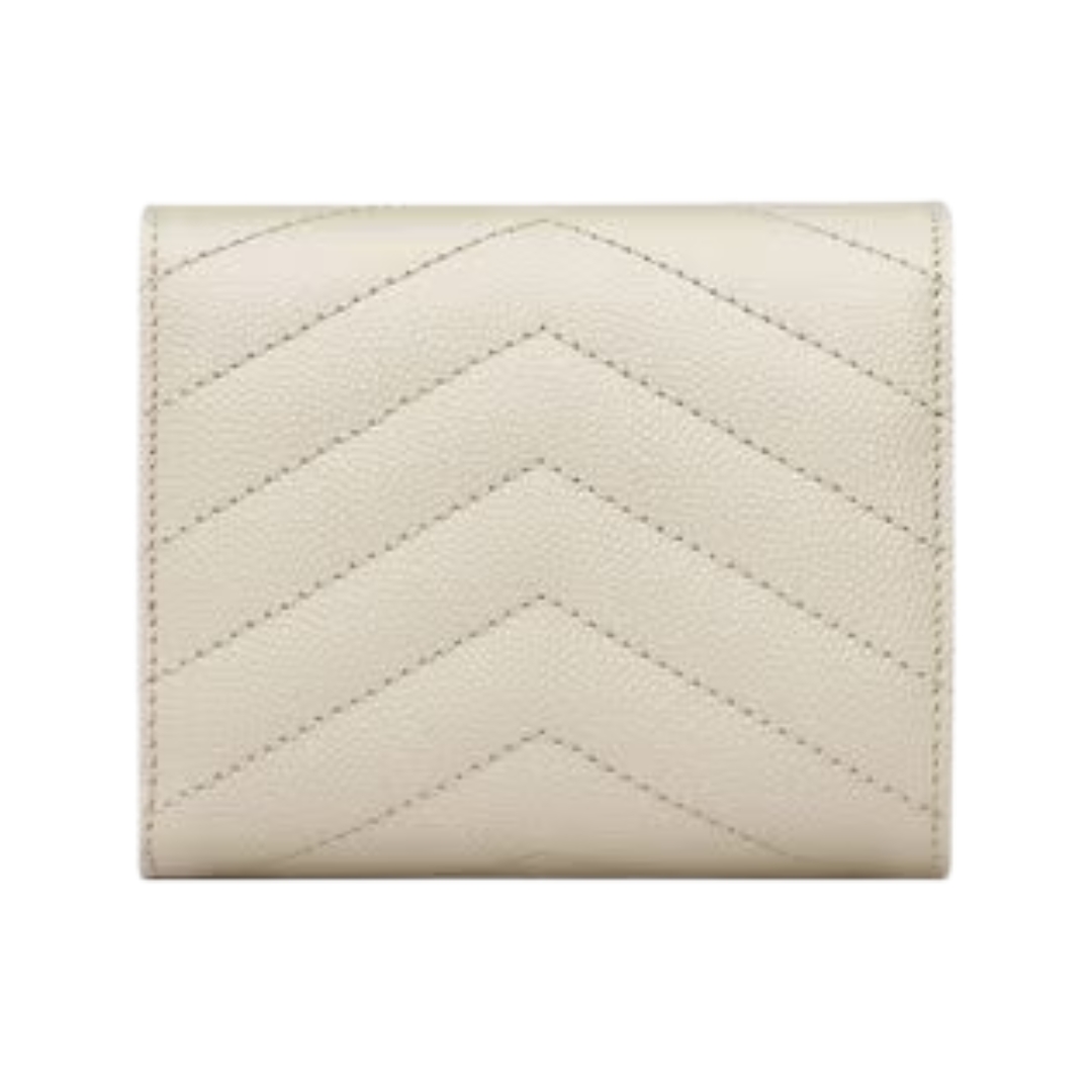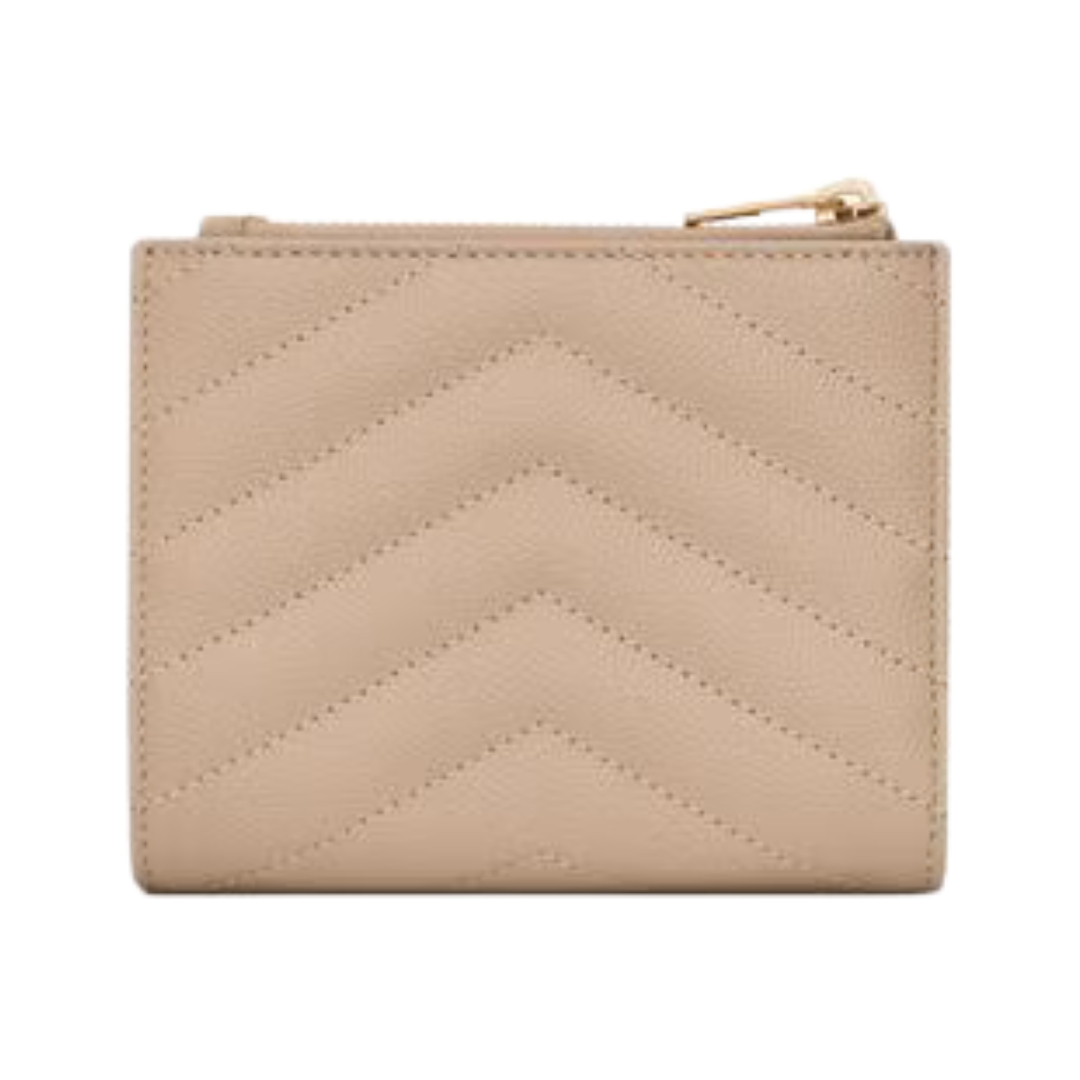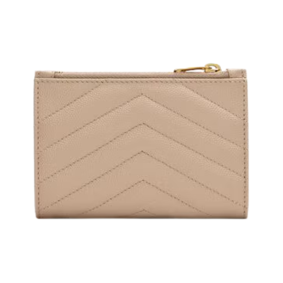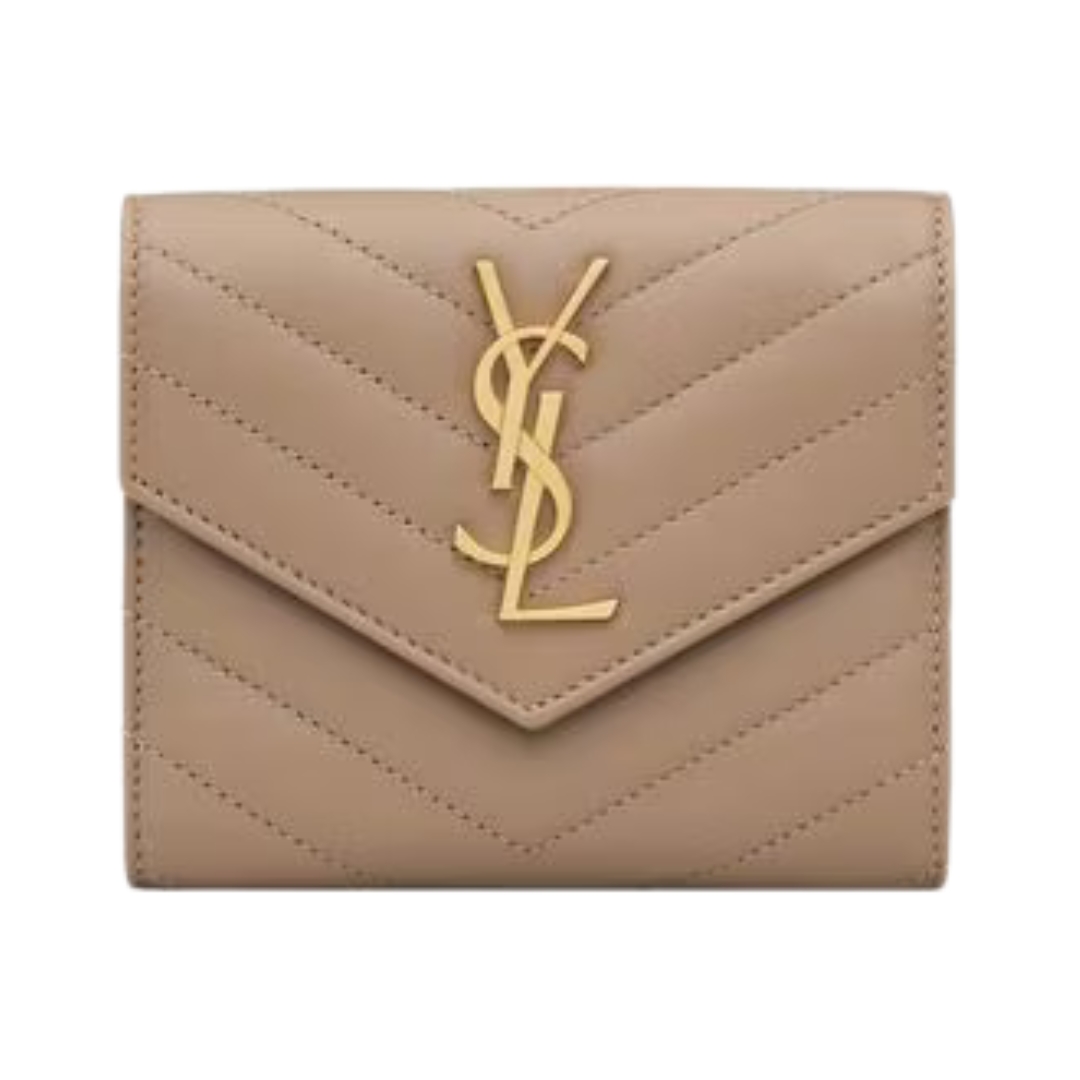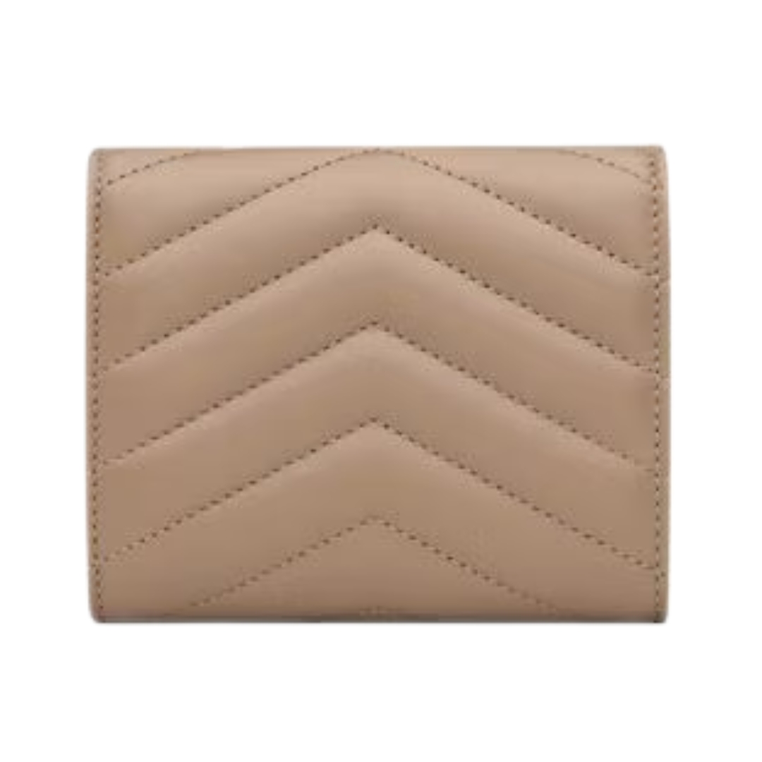 Portafoglio Saint Laurent Cassandre Matelassé Tri-Fold compatto in agnello cipria 12.5 cm