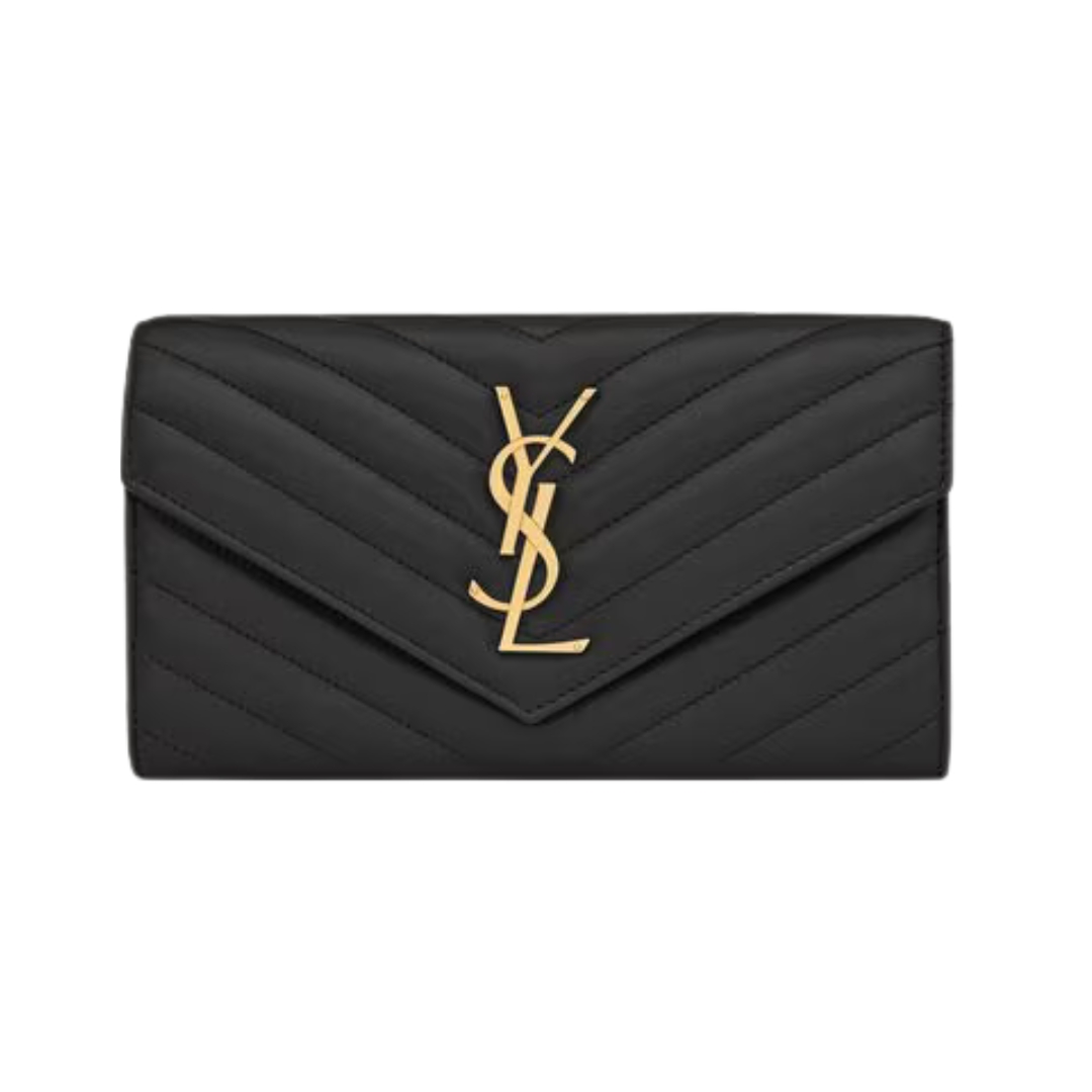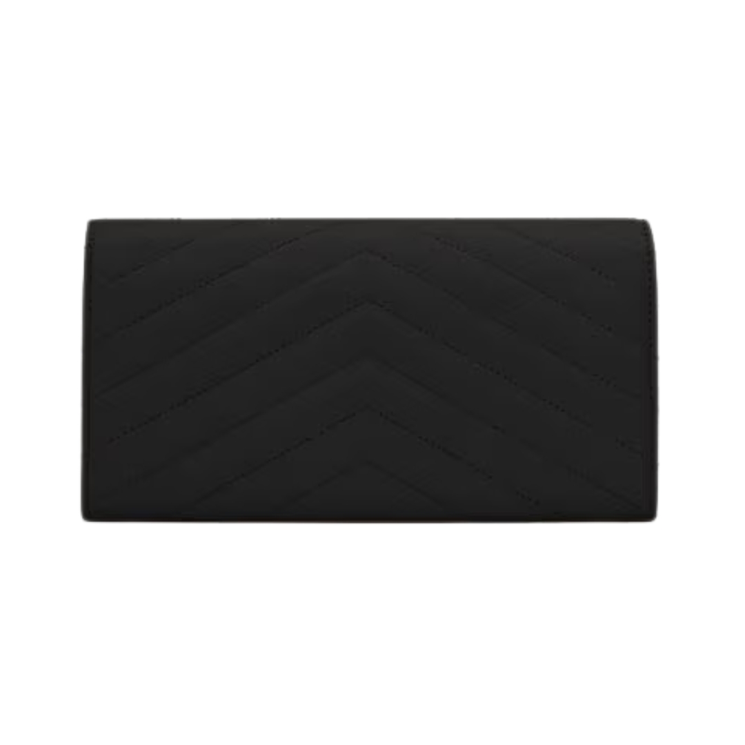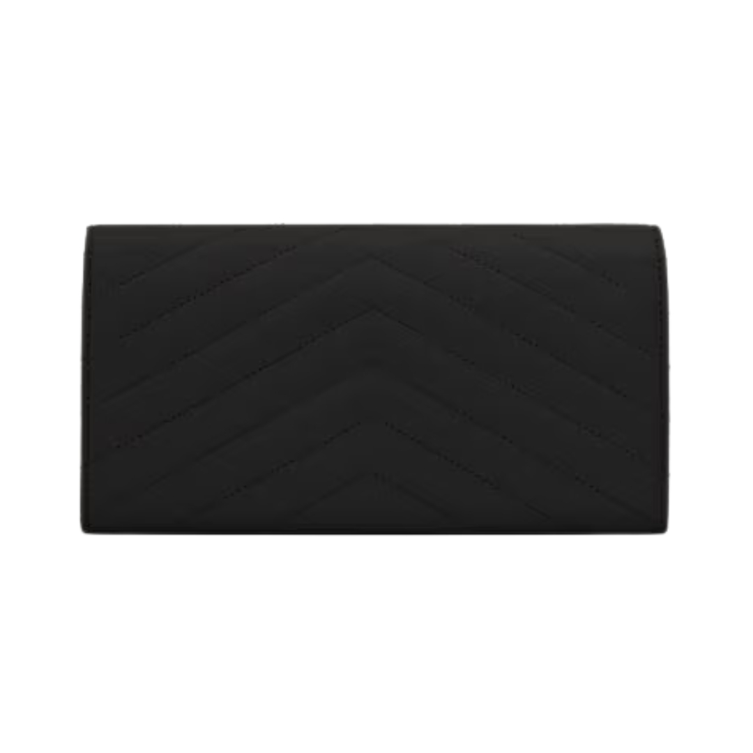 Dettagli:● Materiale: Pelle matelassé● Colore: Nero● Chiusura: Patta con bottone● Logo: YSL dorato● Interno: Slot per carte e banconote● Parti