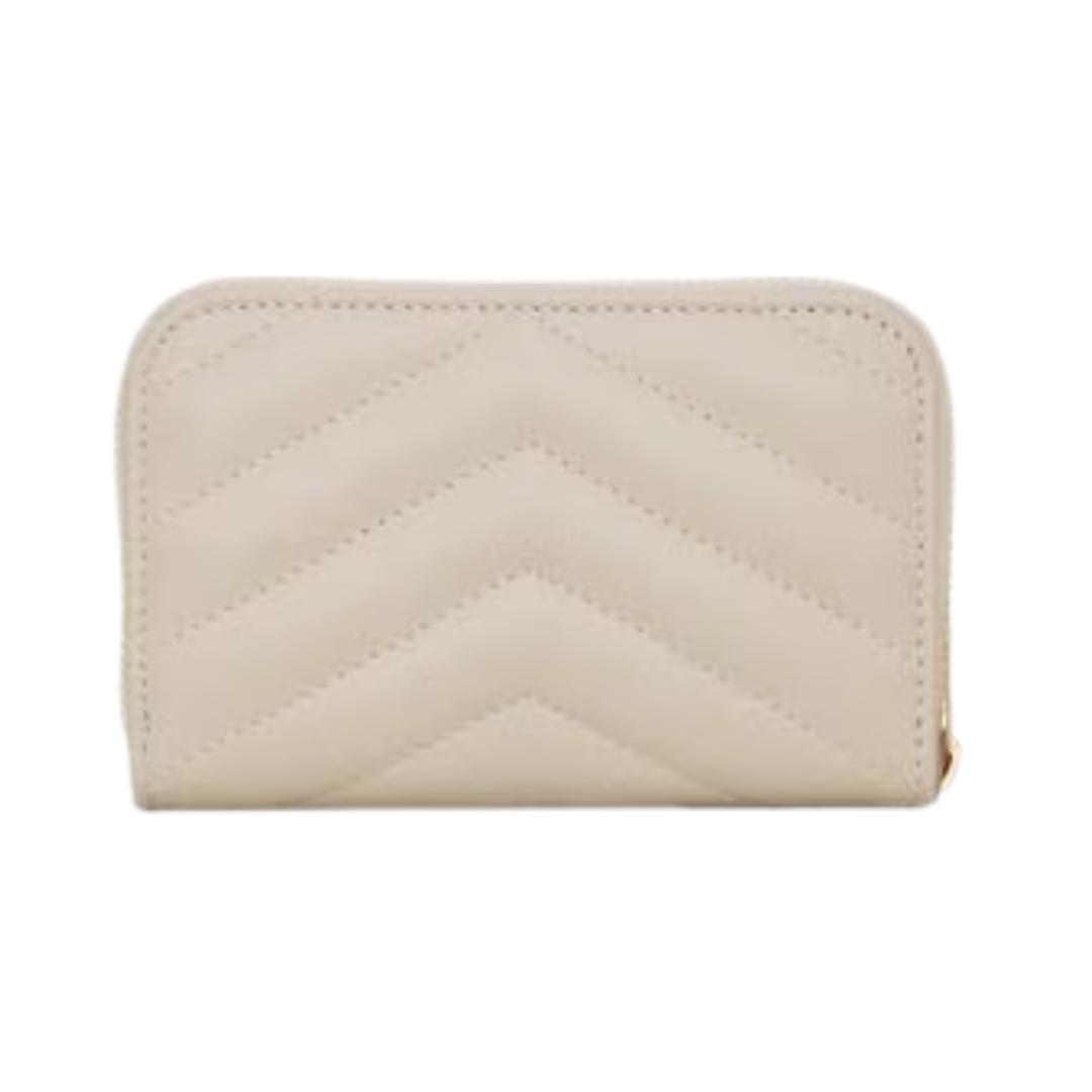 Dimensioni:● Larghezza: 11 cm● Altezza: 8.5 cm● Profondità: 2 cm Dettagli:● Materiale: pelle di agnello● Colore: beige chiaro● Chiusura: zip