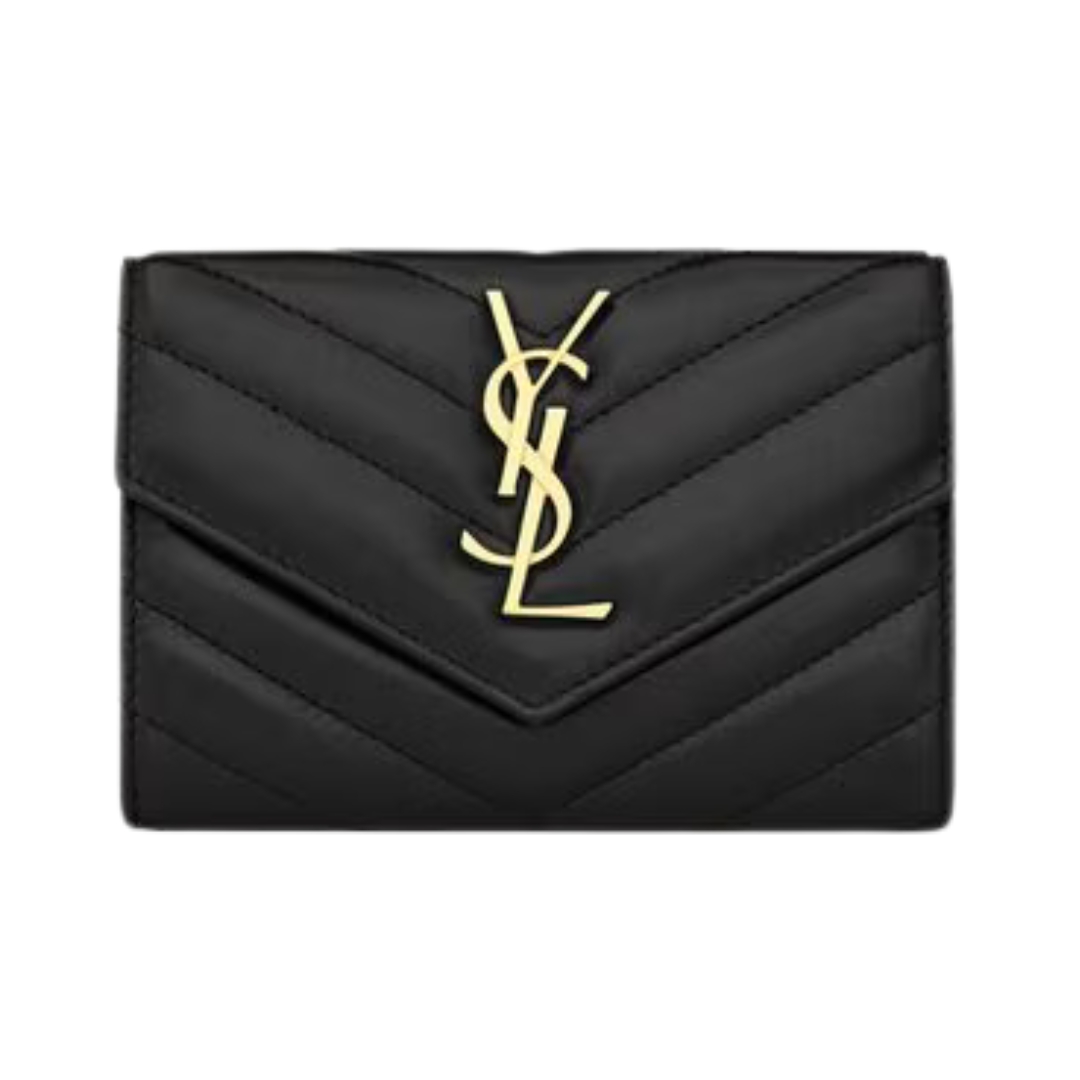 Portafoglio Saint Laurent Cassandre Matelassé a busta piccolo in pelle Grain de Poudre nera 13.5 cm