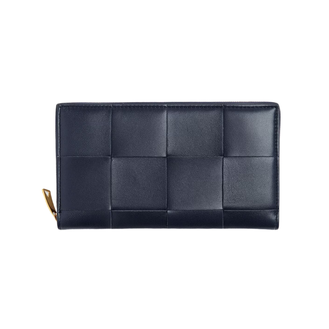 Portafoglio in pelle intrecciata blu notte 11.5 cm