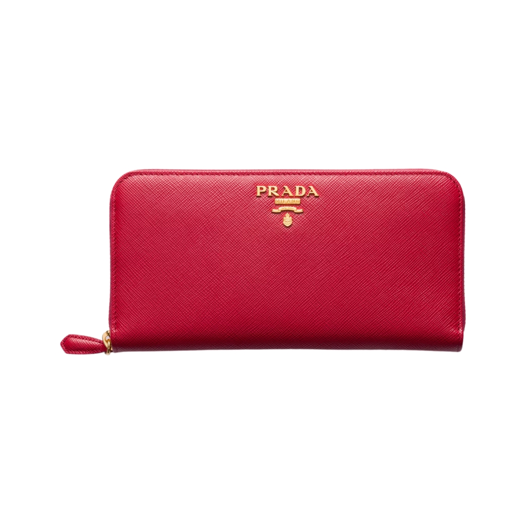 Portafoglio compatto Prada in pelle Saffiano rosso fuoco 10.3 cm