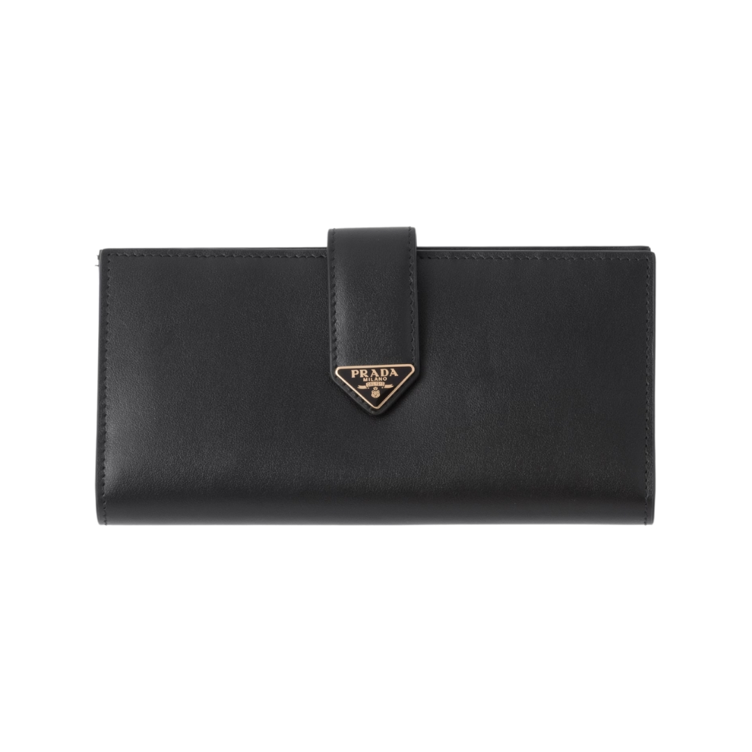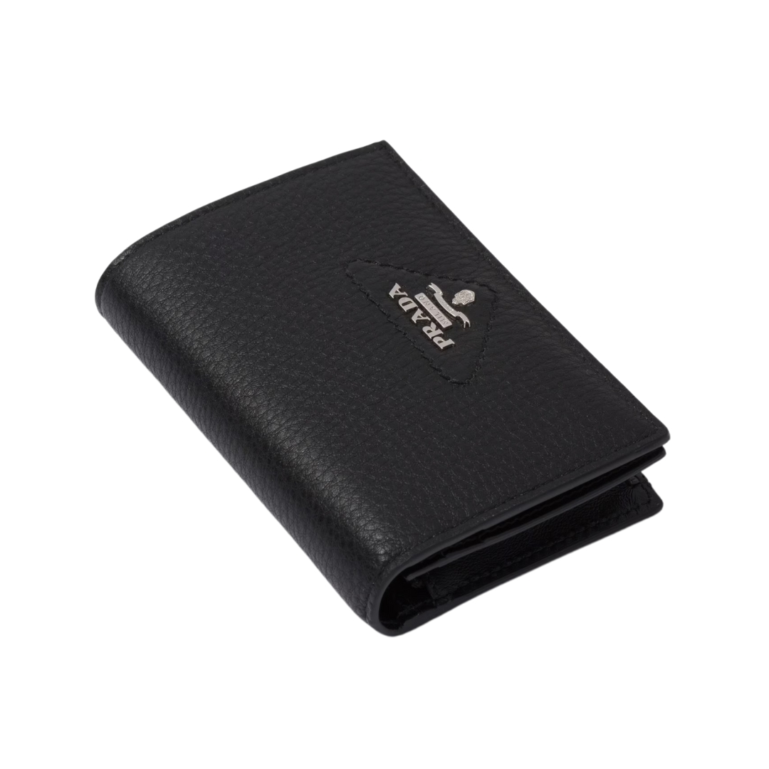 Portafoglio compatto Prada in pelle nera 10.3 cm