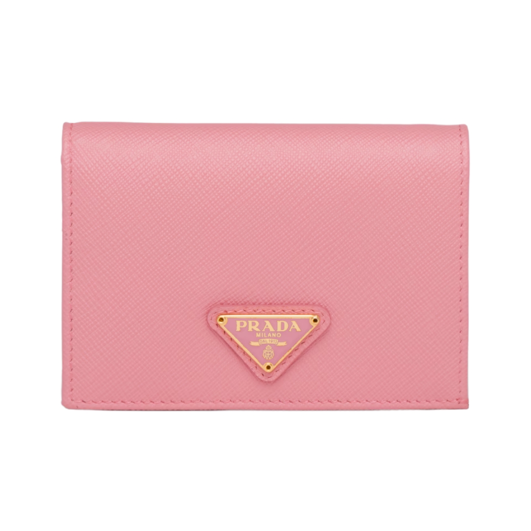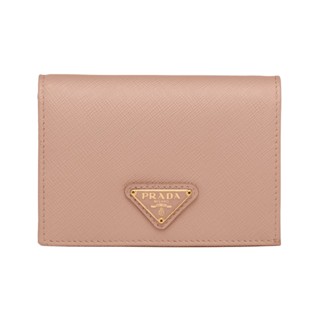 Portafoglio compatto Prada in pelle Saffiano rosa cipria 9.5 cm