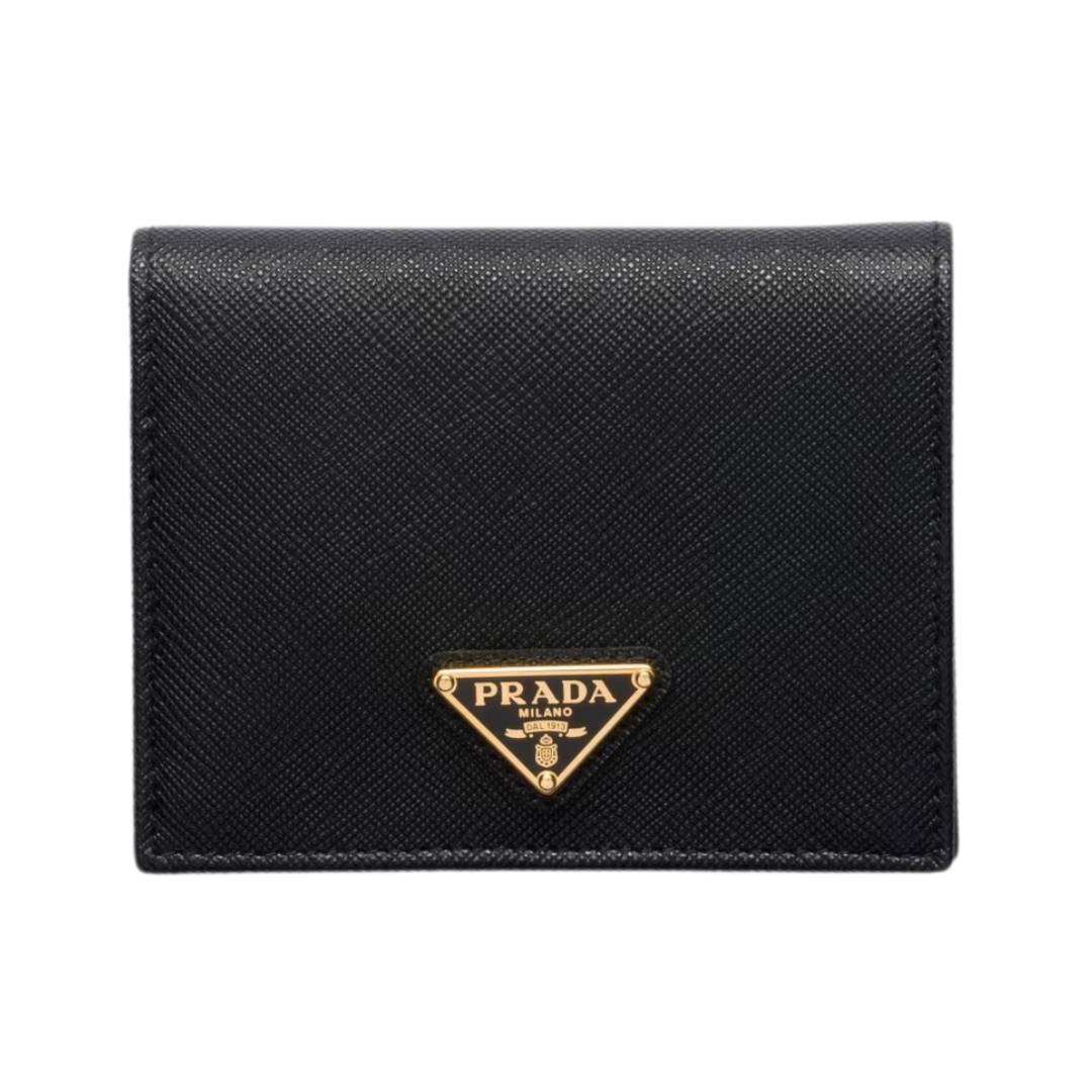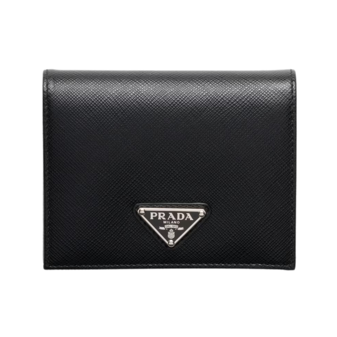 Portafoglio Prada compatto in pelle Saffiano nero 11,2 cm