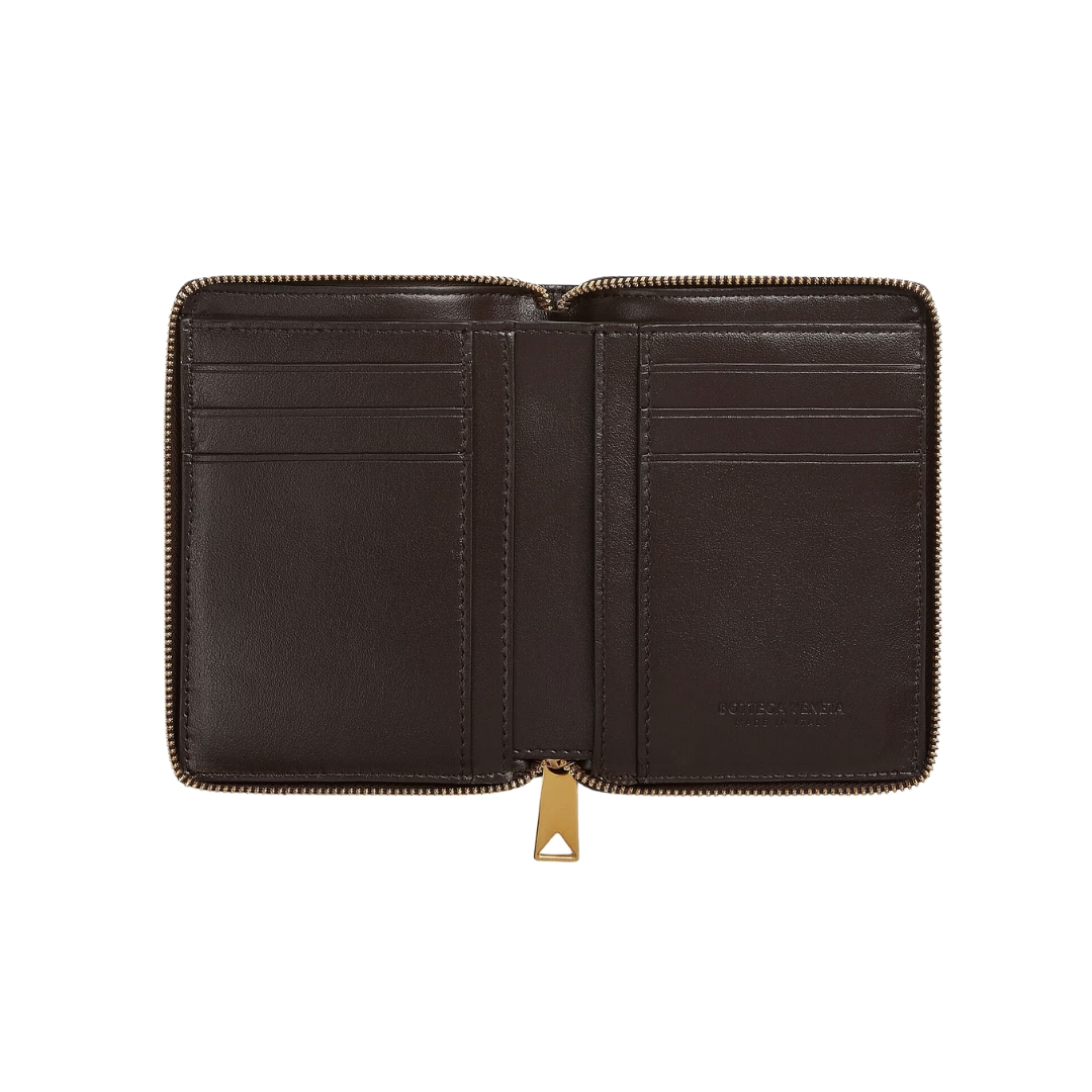 Portafoglio compatto Bottega Veneta in pelle intrecciata fondant 9.5 cm