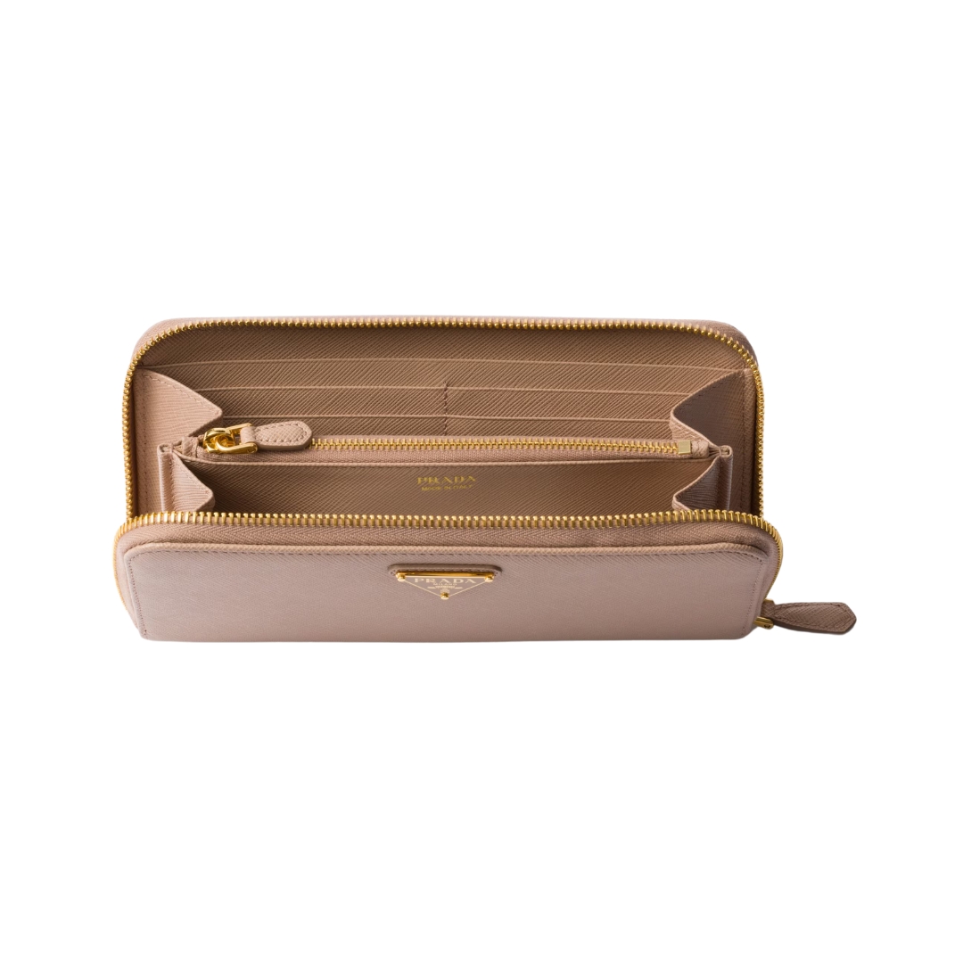 Portafoglio grande Prada in pelle Saffiano rosa cipria 9,5 cm
