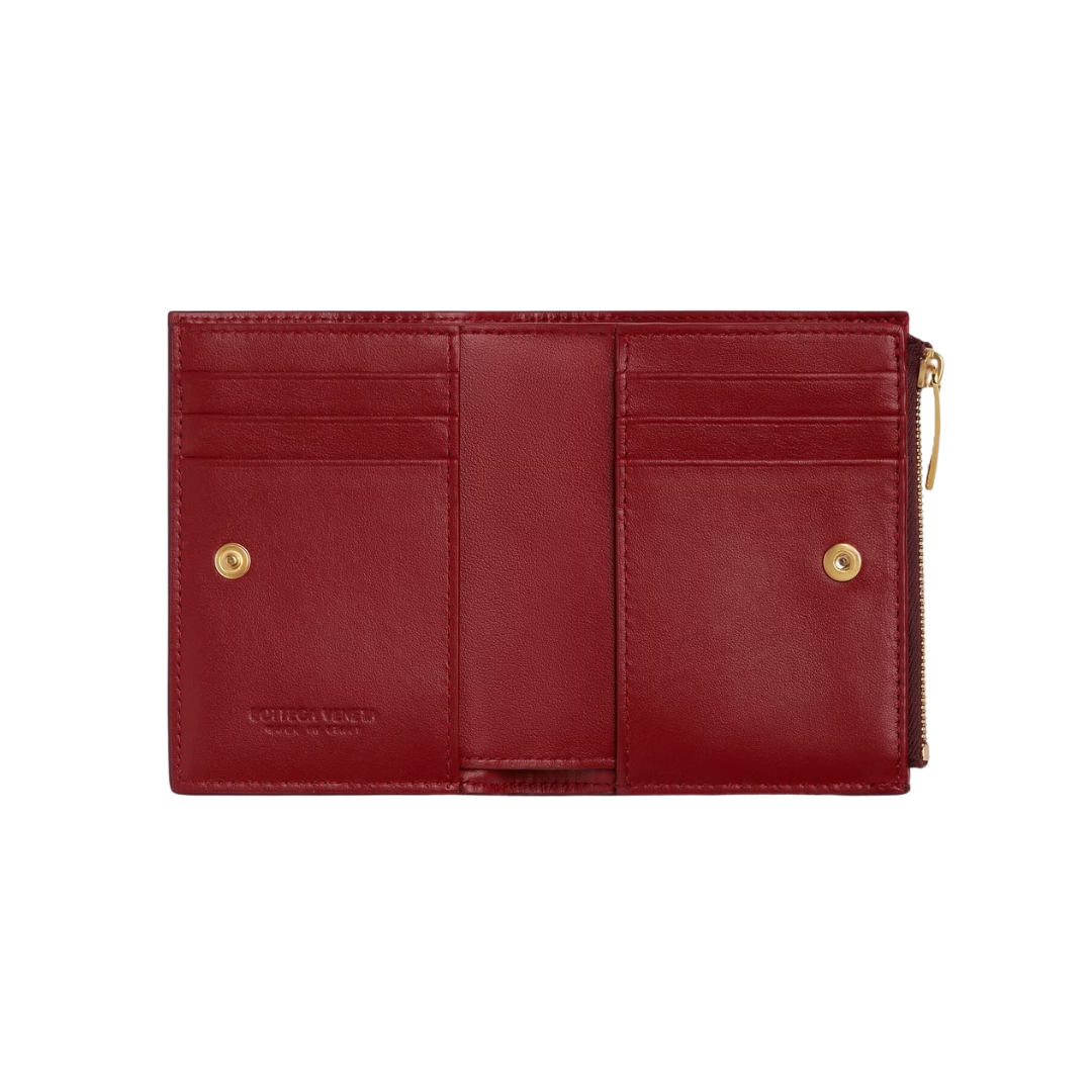 Portafoglio compatto Bottega Veneta in pelle rosso scuro 9 cm