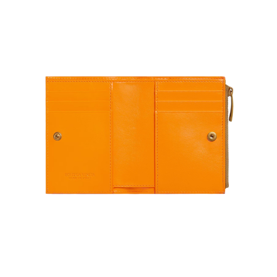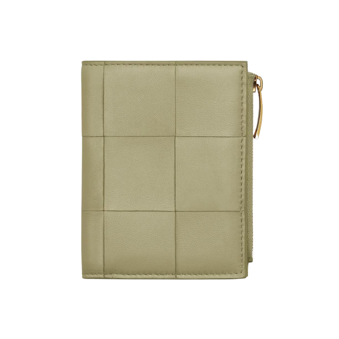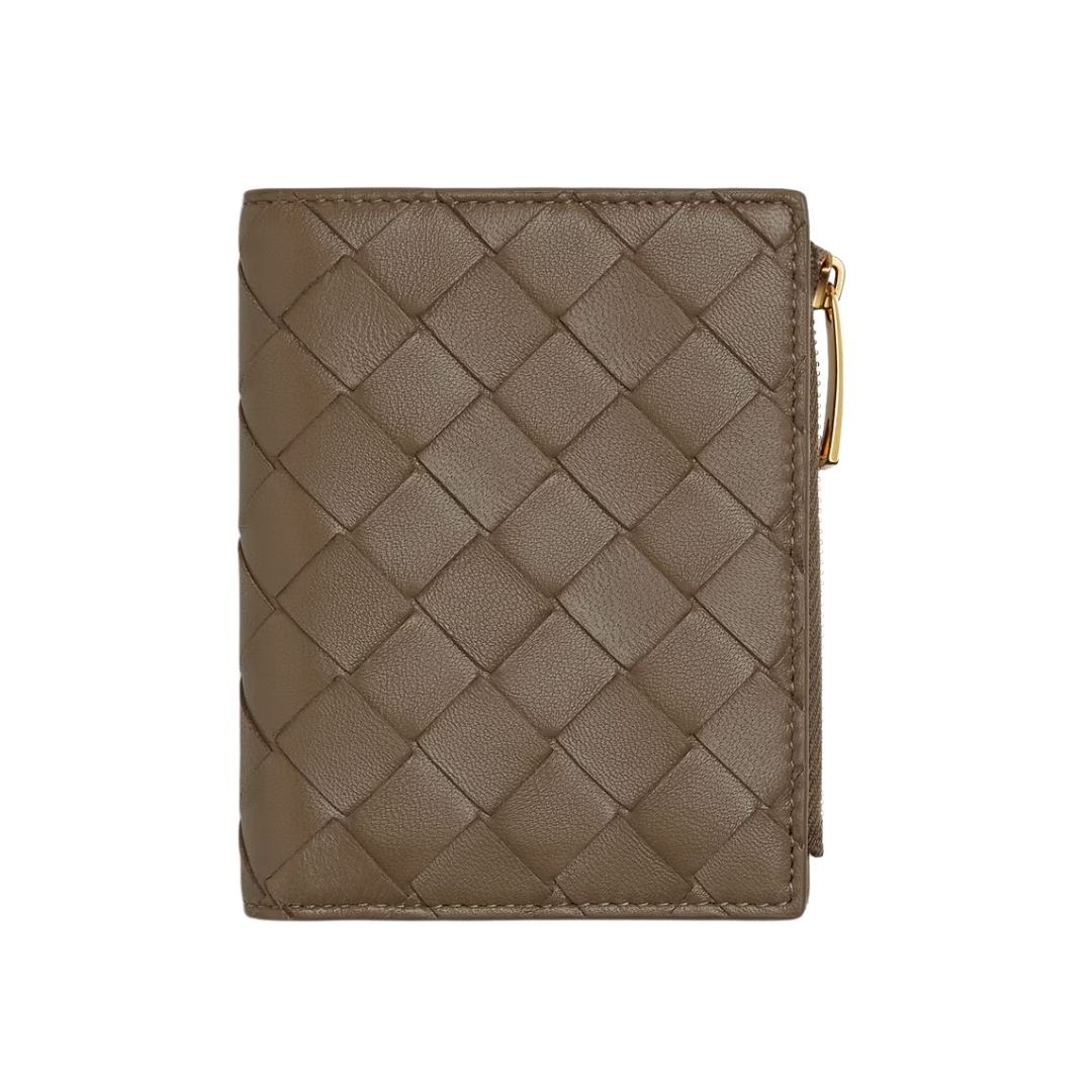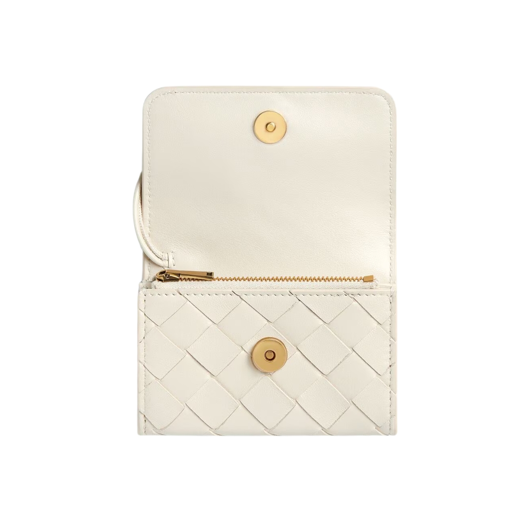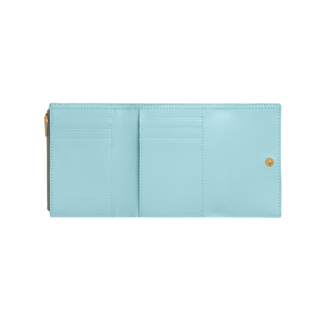 Portafoglio compatto Bottega Veneta in pelle intrecciata gesso 9 cm