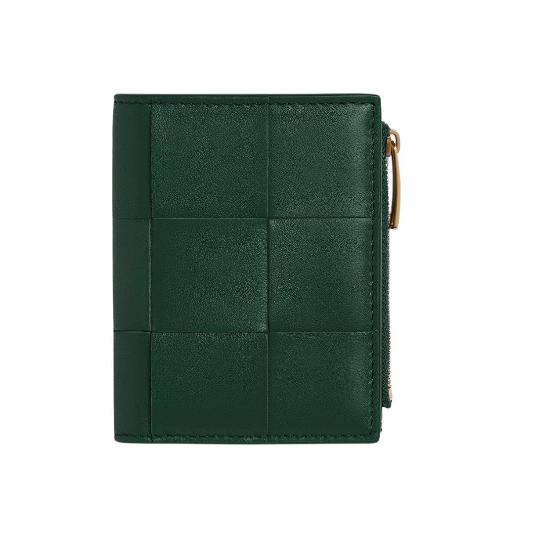 Portafoglio Bottega Veneta in nappa intrecciata verde smeraldo 11.5 cm