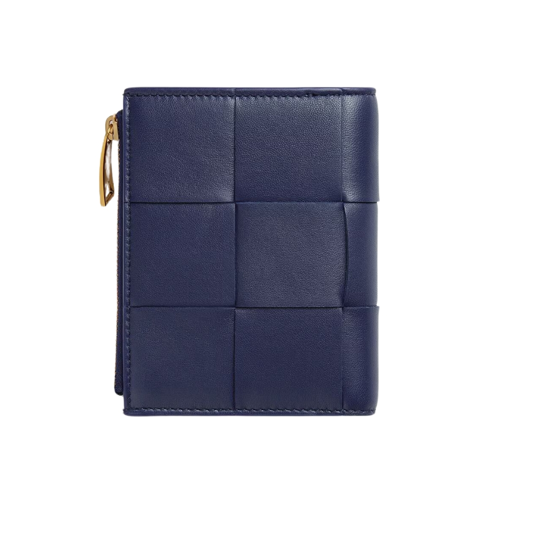Portafoglio Bottega Veneta bicolore in nappa intrecciata blu Duke 11.5 cm