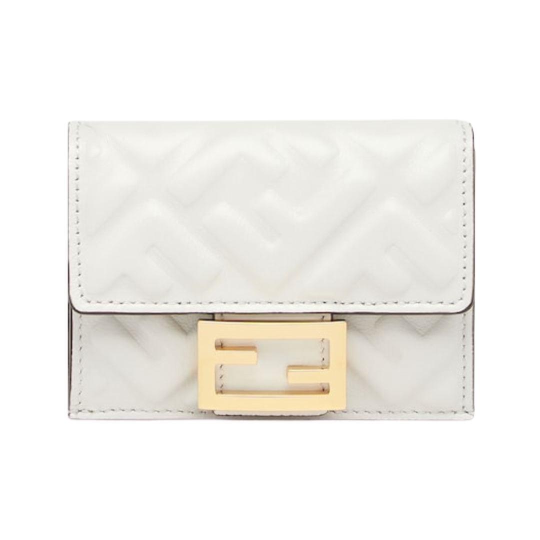 Portafoglio Fendi in nappa bianca con motivo FF 7.5 cm