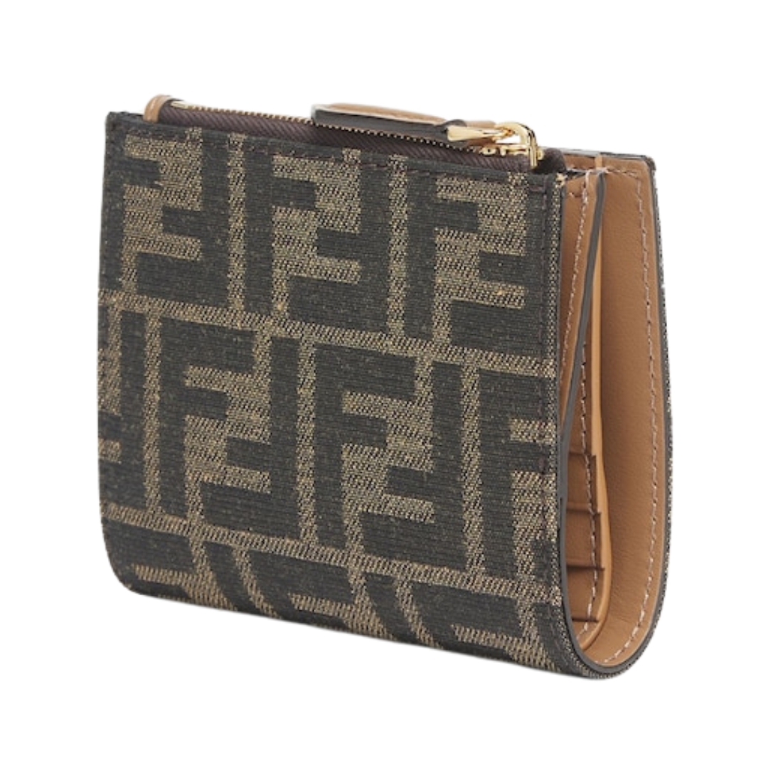 Portafoglio Fendi in jacquard marrone con motivo FF 9.5 cm