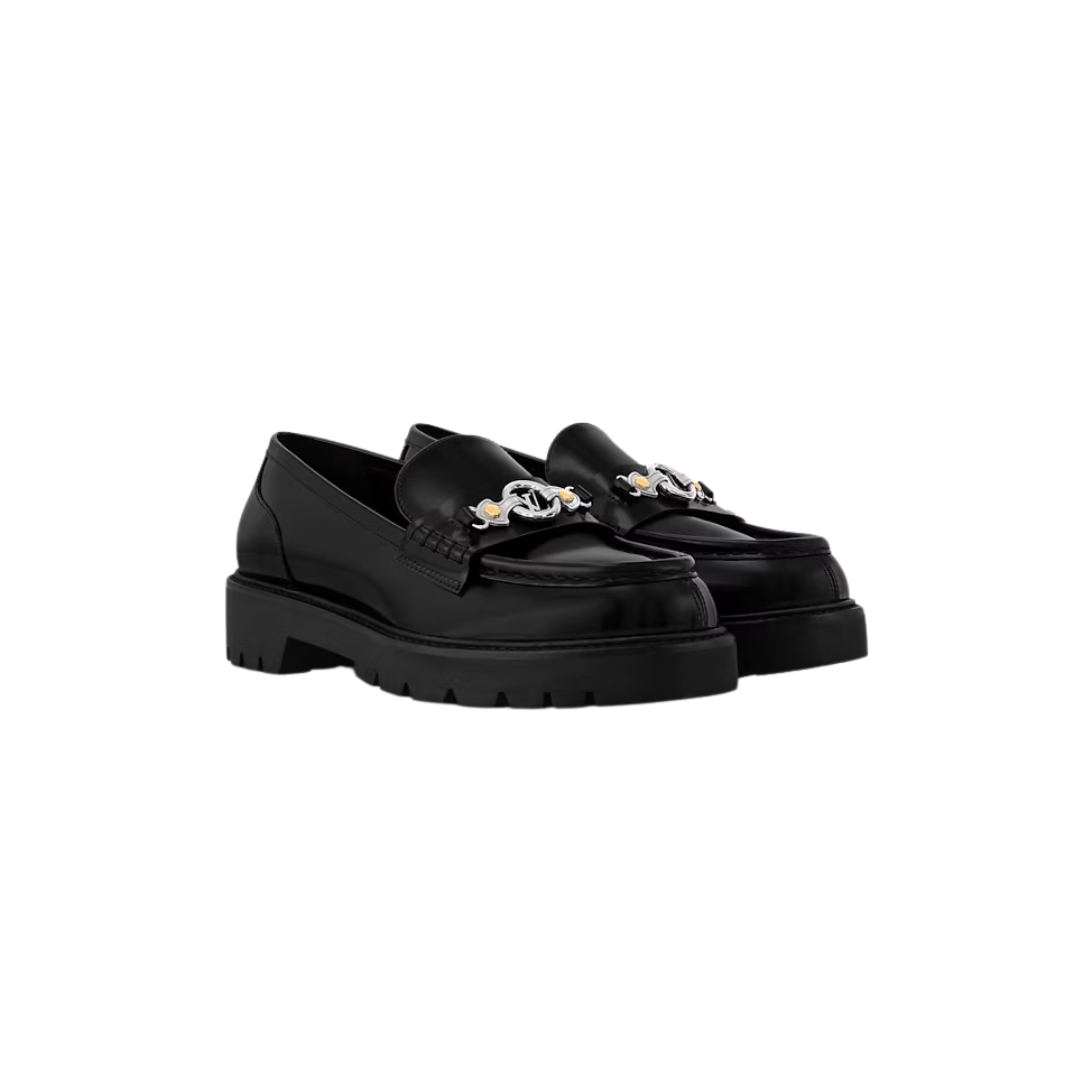 Dettagli:● Materiale: Pelle martellata● Colore: Nero● Chiusura: Slip-on● Logo: Catena con iniziali LV in metallo● Suola: Gomma spessa● Interno: Pelle●