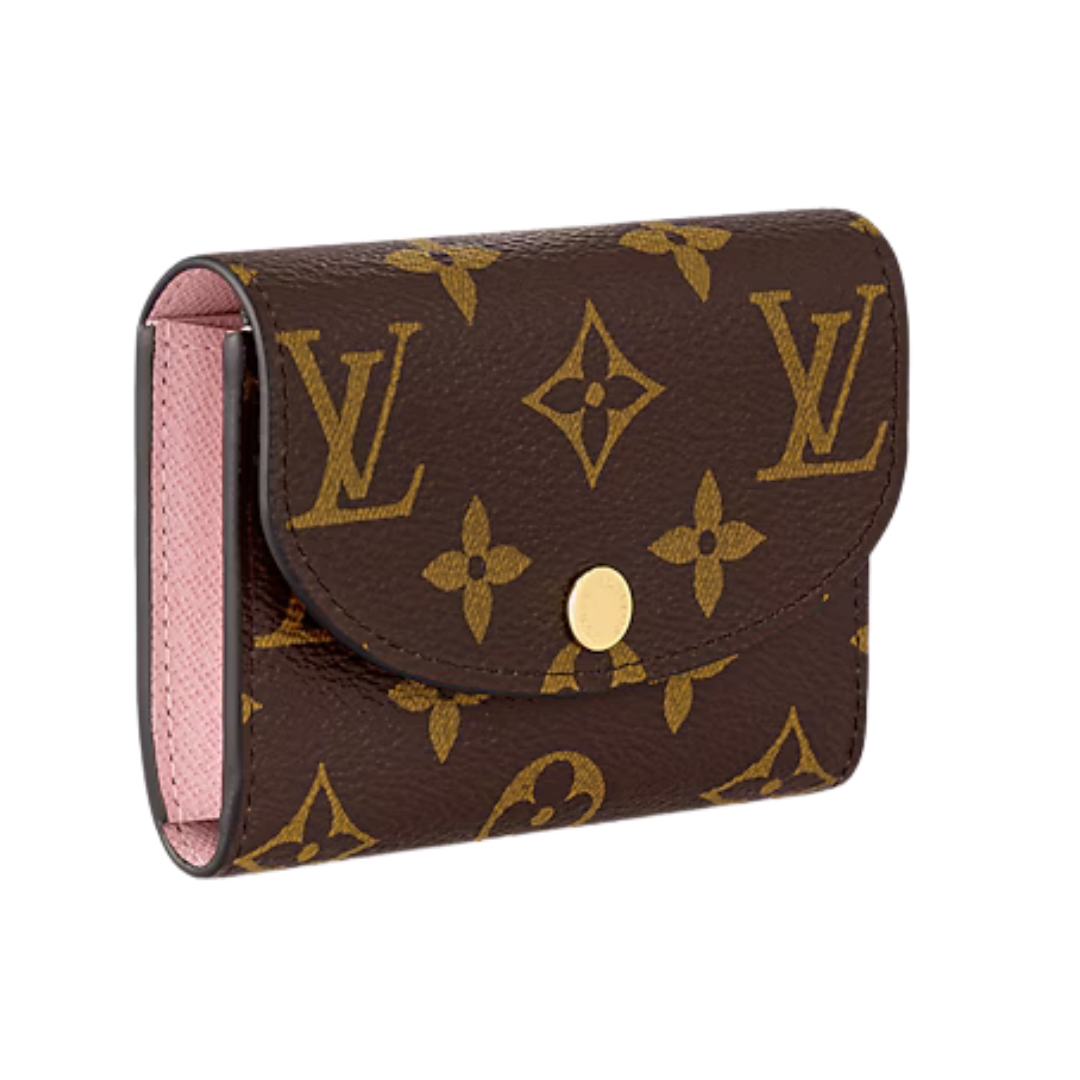 Portamonete Louis Vuitton Rosalie in tela Monogram e interno rosa ballerina 11 cm