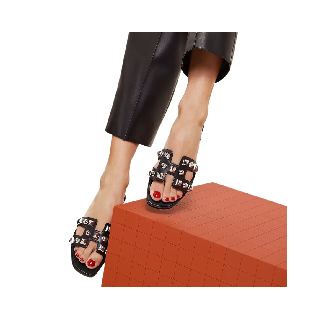 Dettagli:● Materiale: Pelle di vitello● Colore: Nero● Chiusura: Cinturino posteriore● Logo: Fibbie LV dorate● Suola: Pelle● Interno: Pelle● Parti metalliche: