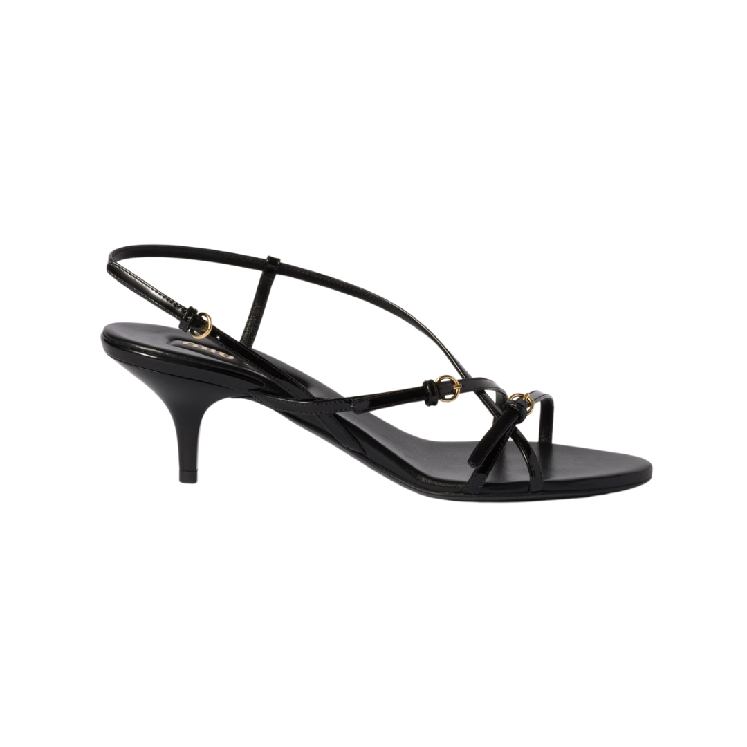 Dettagli:● Materiale: Pelle verniciata● Colore: Nero● Chiusura: Cinturino elastico sul tallone● Logo: Miu Miu impresso internamente● Suola: Cuoio● Interno: Pelle●