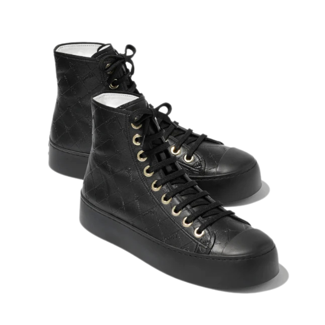 Dettagli:● Materiale: Pelle stampata● Colore: Nero● Chiusura: Lacci● Logo: Stampa all-over● Suola: Gomma spessa● Interno: Tessuto tecnico● Parti metalliche: Minime