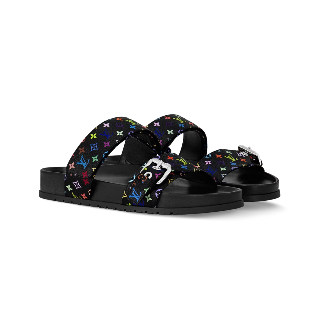 Sandali Louis Vuitton Bom Dia Flat Comfort neri multicolor