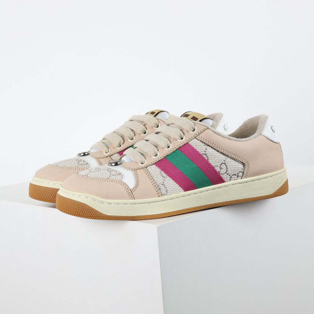 Dettagli:● Materiale: Pelle, suede e canvas GG● Colore: Beige, rosa, verde e bianco● Chiusura: Lacci in cotone● Logo: Nastro Web