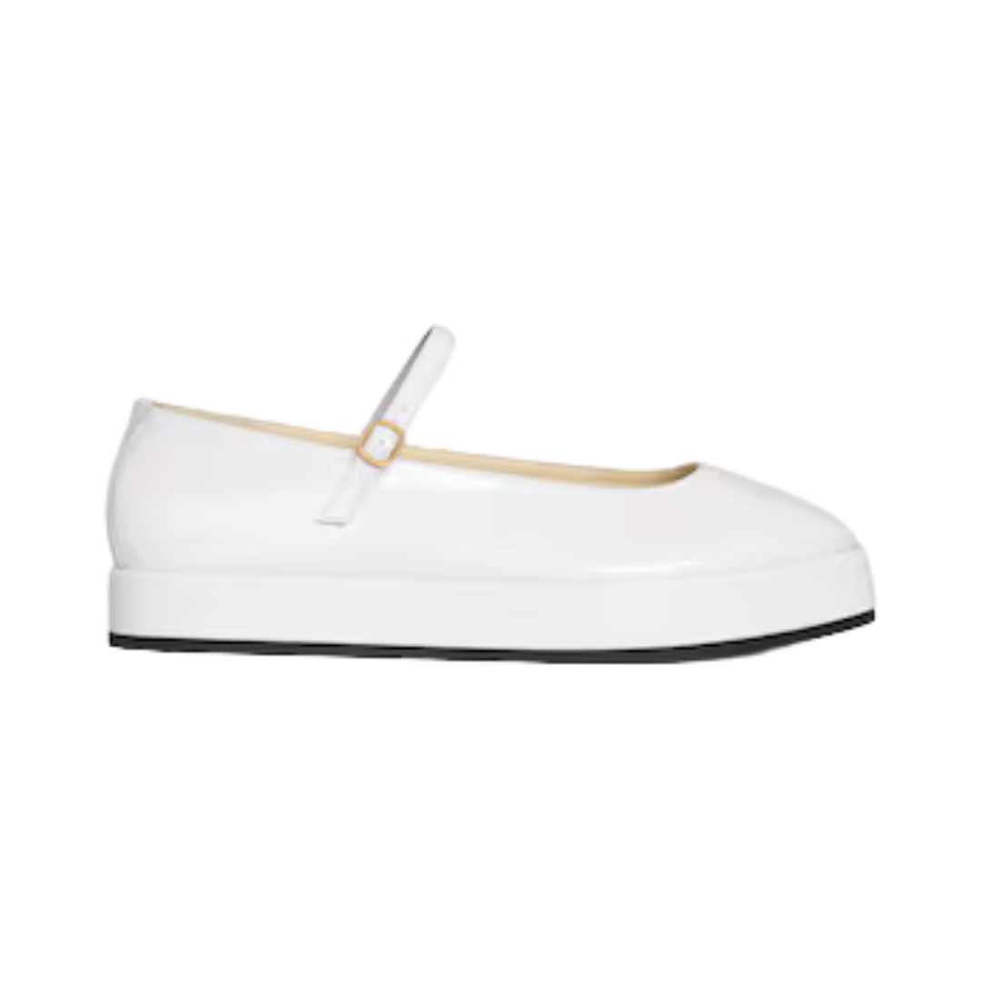 Dettagli:● Materiale: Pelle verniciata di vitello● Colore: Bianco panna● Chiusura: Cinturino Mary Jane con bottone● Logo: Stampato sulla soletta● Suola: