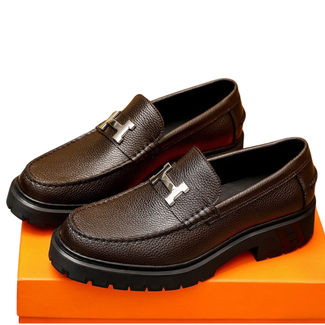 Dettagli:● Materiale: Pelle di vitello● Colore: Marrone scuro● Chiusura: Slip-on● Logo: Fibbia “H” in metallo argentato sulla tomaia● Suola: In