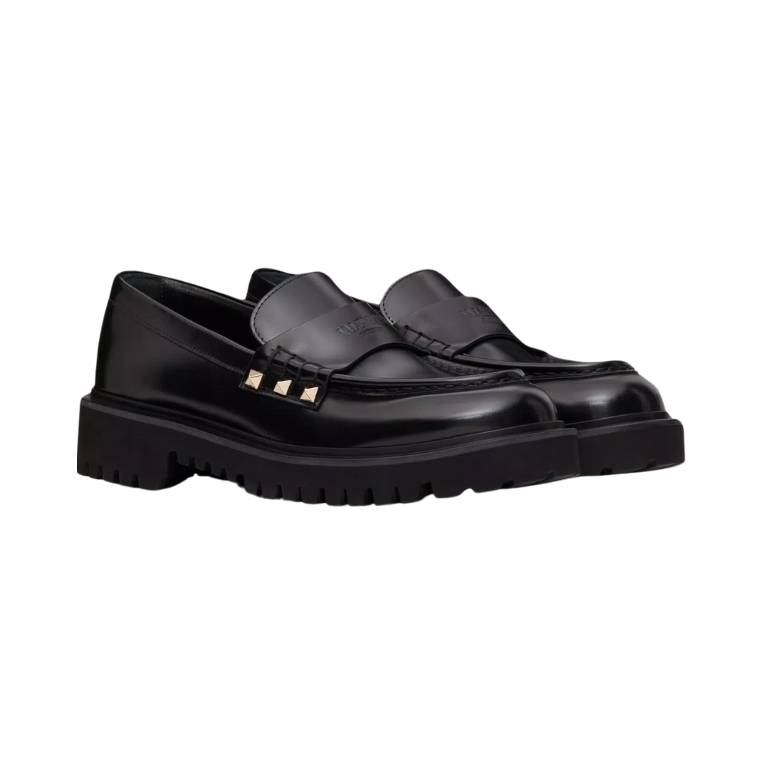 Mocassini Valentino Buffalo in pelle nera con suola alta