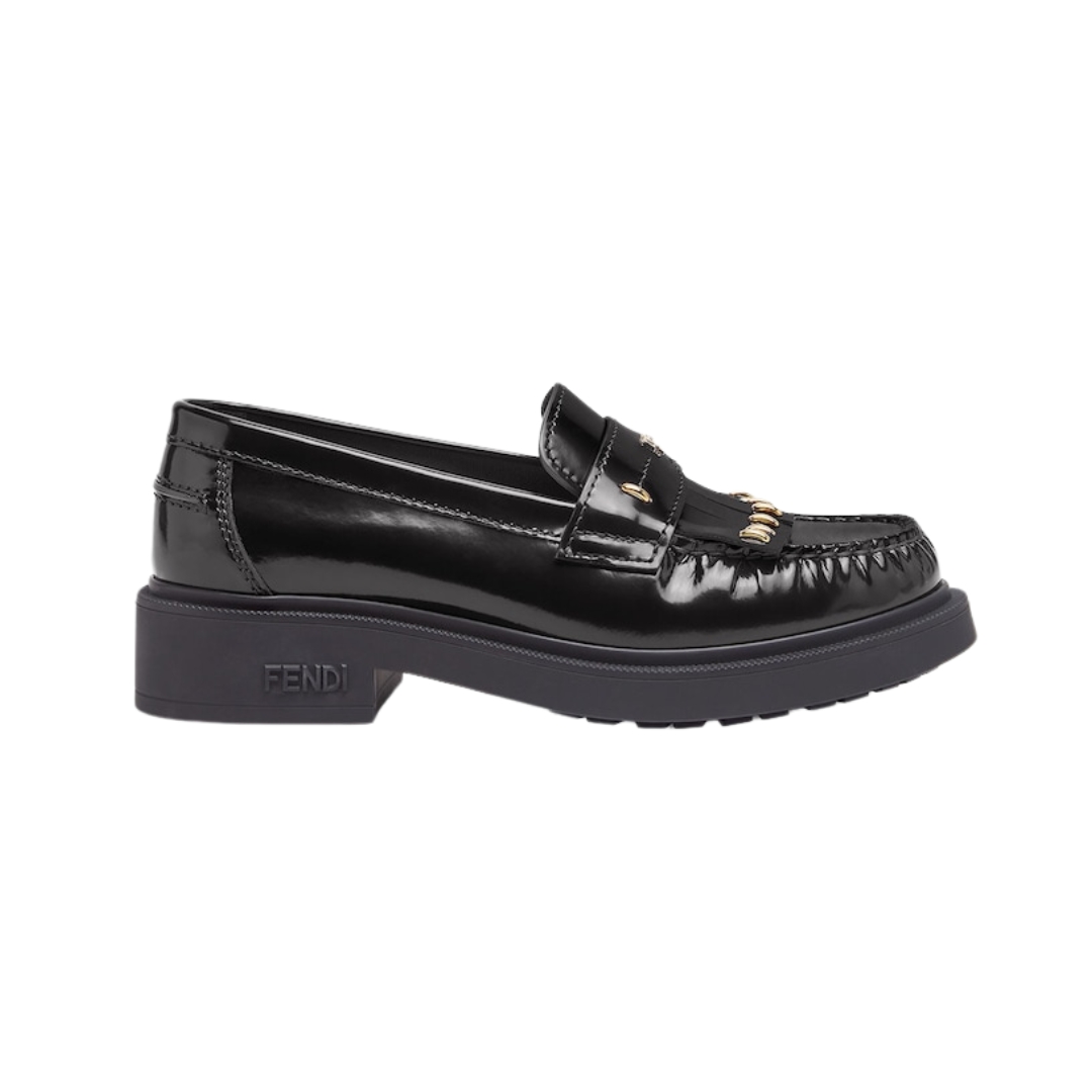 Mocassini Fendi in pelle nera con dettaglio FF