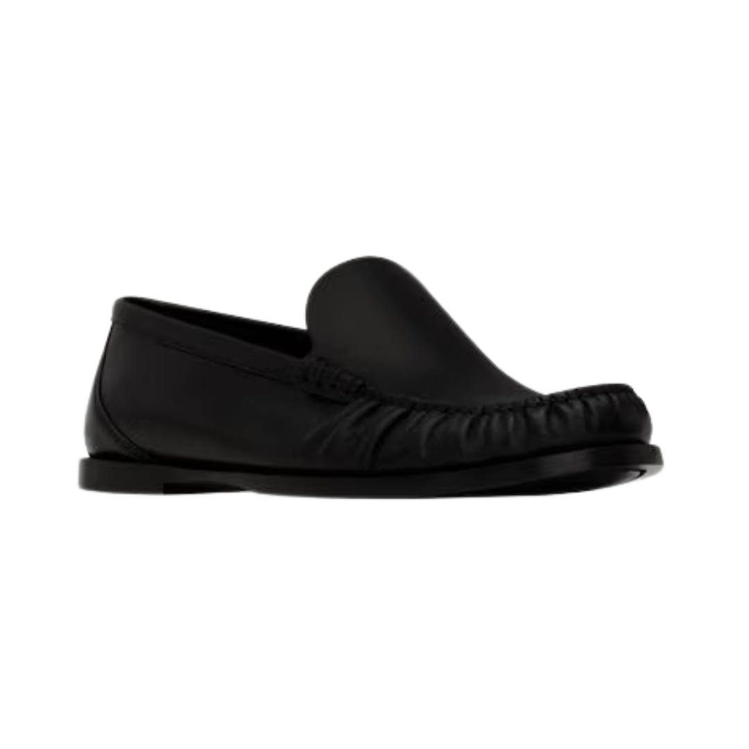 Mocassini Saint Laurent in pelle liscia nera con effetto arricciato