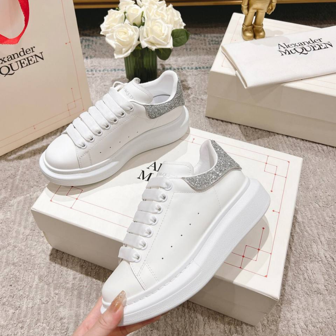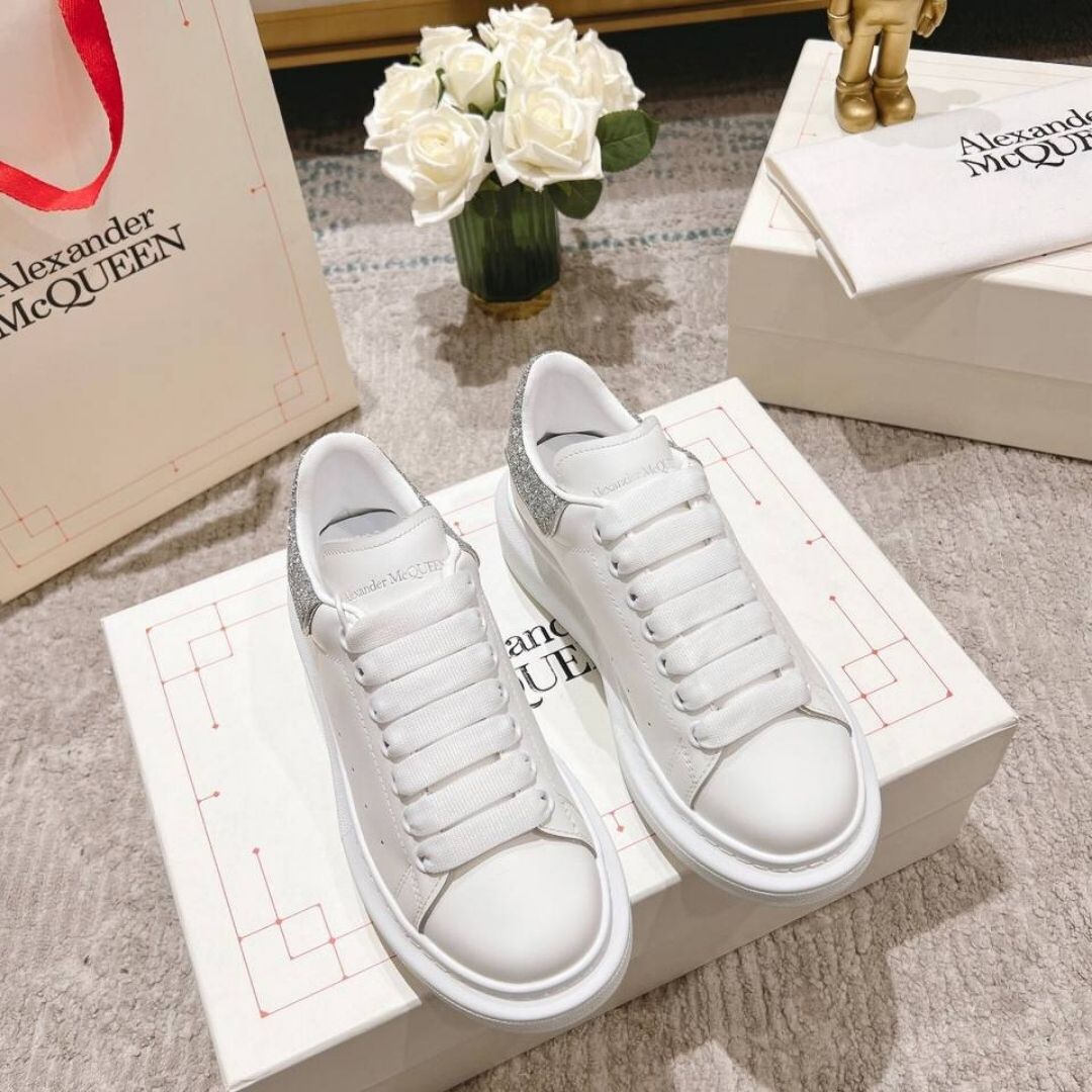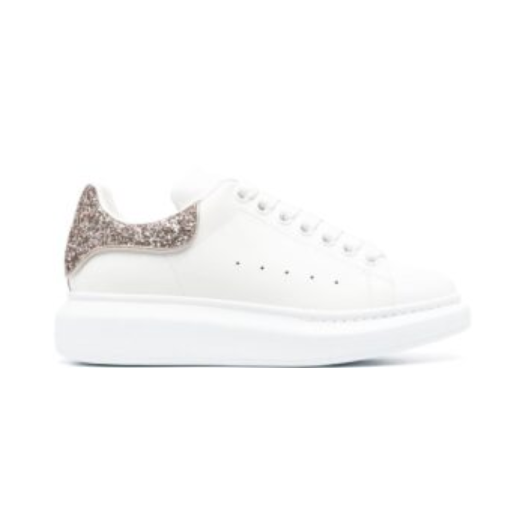 Scarpe Alexander McQueen Oversize bianche con tallone bronzo glitterato
