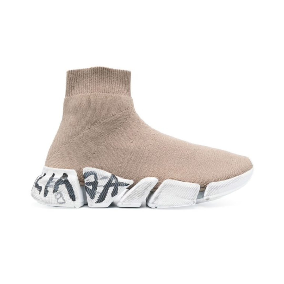 Scarpa Balenciaga Speed 2.0 Graffiti bianca e beige