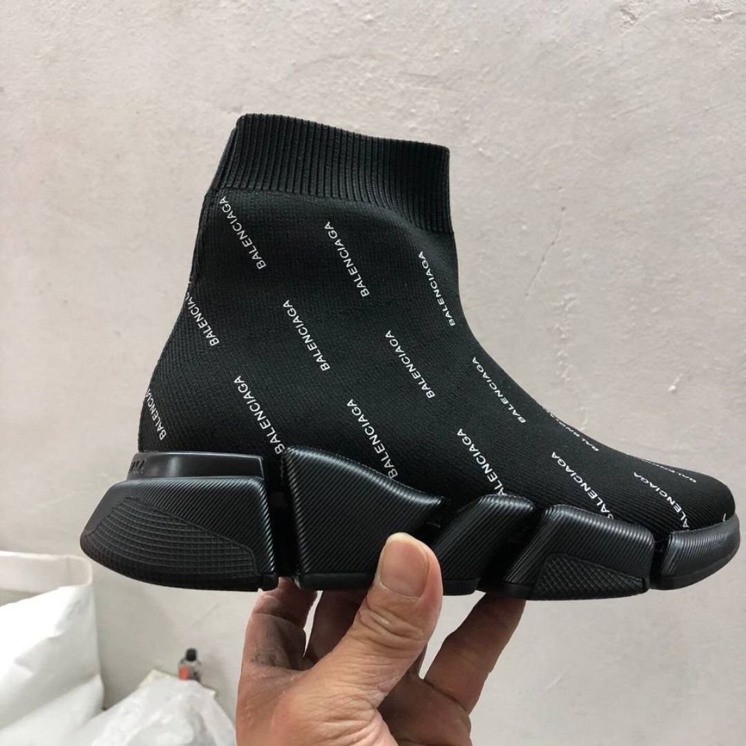 Dettagli:● Materiale: Maglia tecnica stretch● Colore: Nero con dettaglio graffiti rosso e bianco● Chiusura: Senza lacci● Logo: Scritta “Balenciaga” effetto