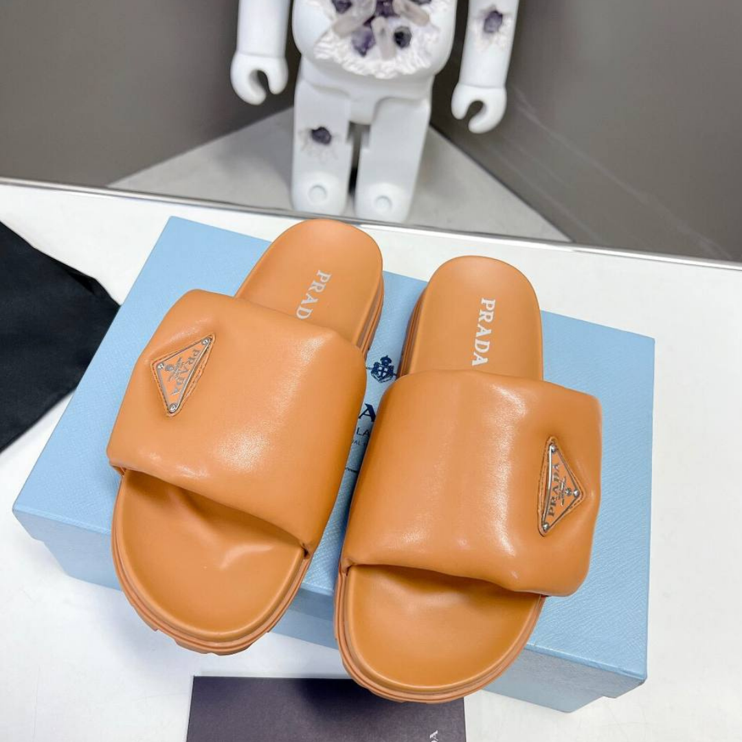 Sandali Prada imbottiti in pelle marrone