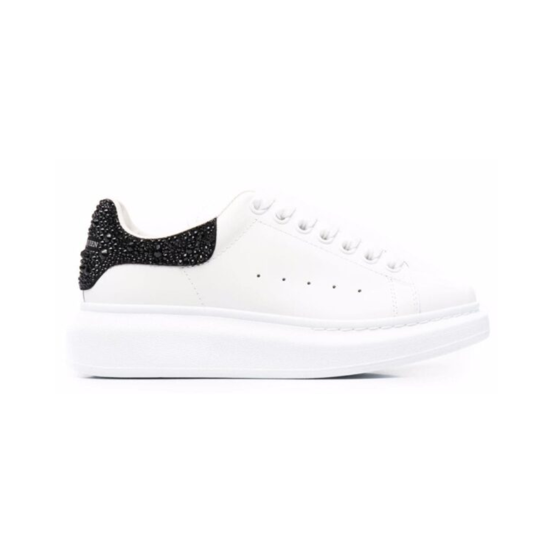 Scarpe Alexander McQueen Oversize in pelle bianca con tallone nero in cristalli