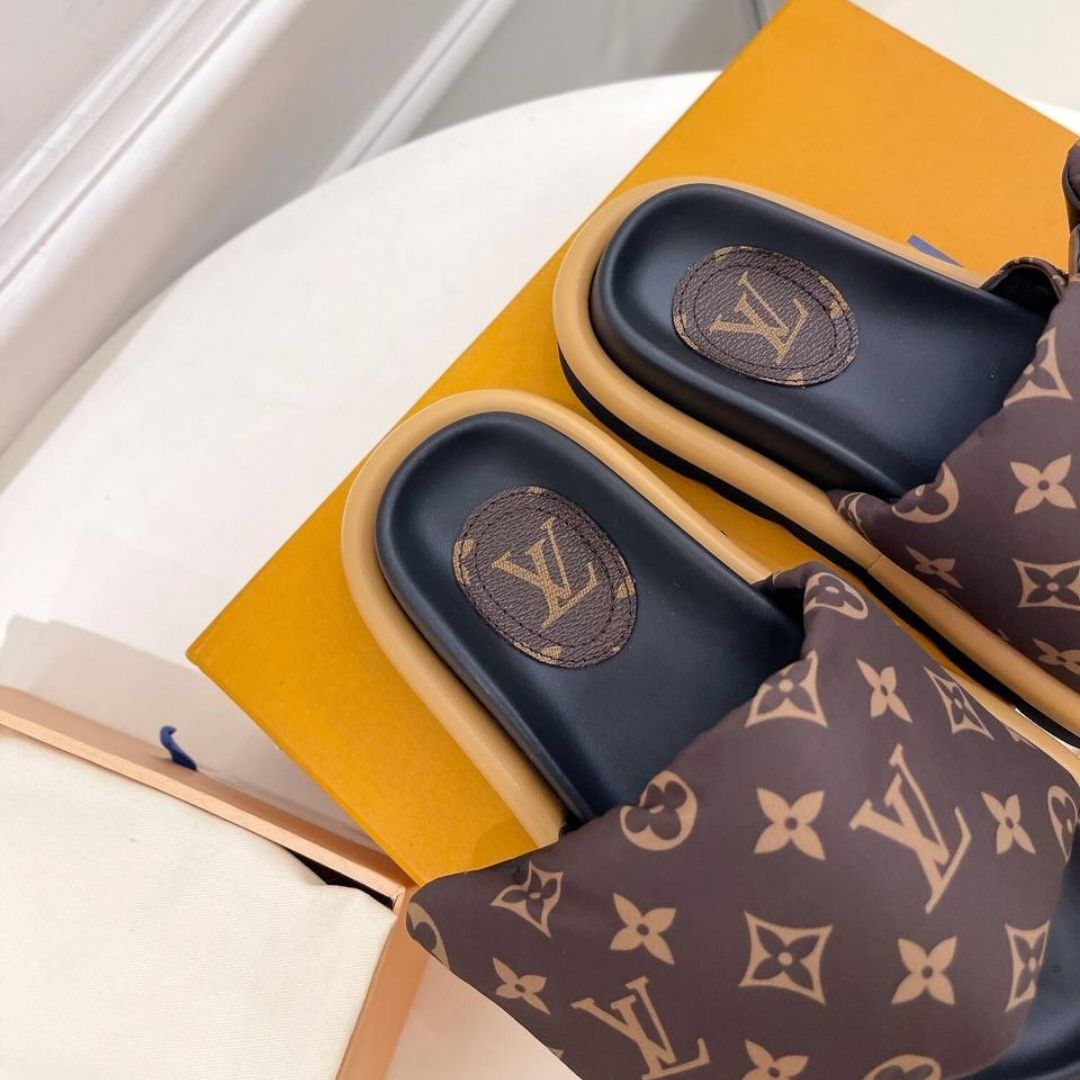 Sandali Louis Vuitton Pool Pillow Flat Comfort marrone e nero