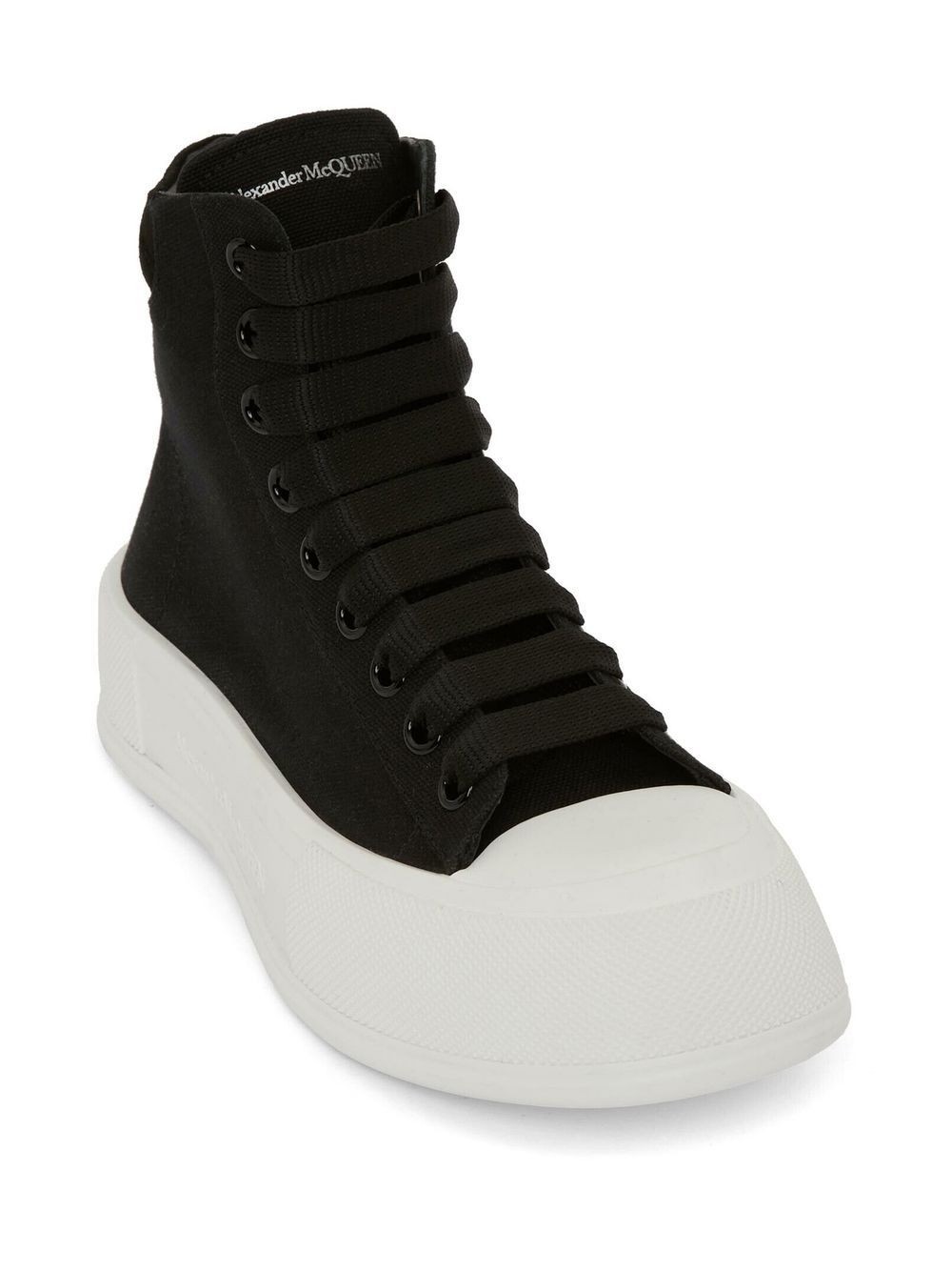 Scarpe Alexander McQueen Deck Plimsoll alte in tela nera e bianca
