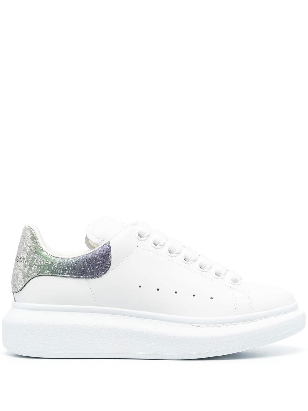 Dettagli:● Materiale: Pelle liscia con dettaglio glitterato● Colore: Bianco con tallone madreperlato multicolore● Chiusura: Lacci bianchi● Logo: Logo Alexander McQueen