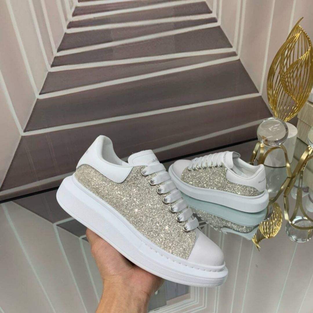 Scarpe Alexander McQueen Oversize bianche con glitter bronzo