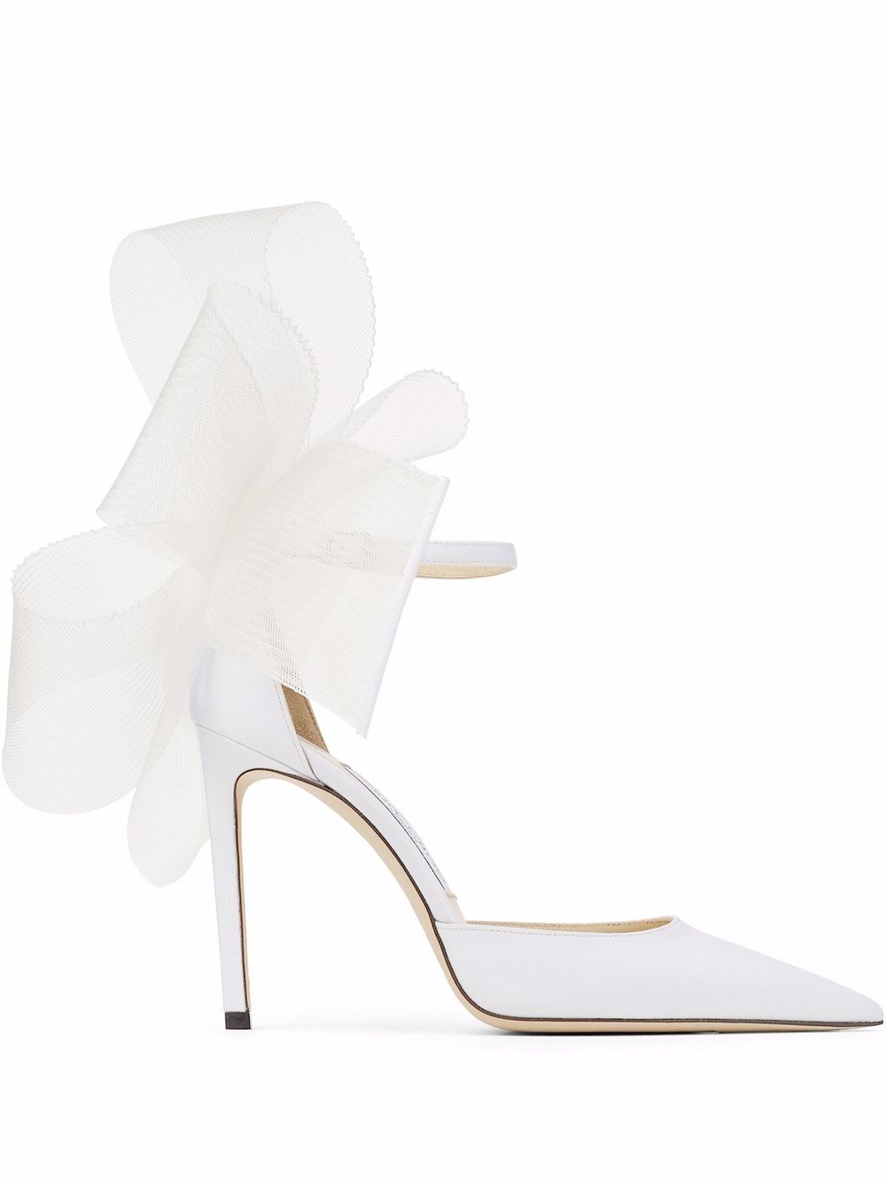 Sandali Jimmy Choo Averly in raso bianco con fiocco oversize 10 cm