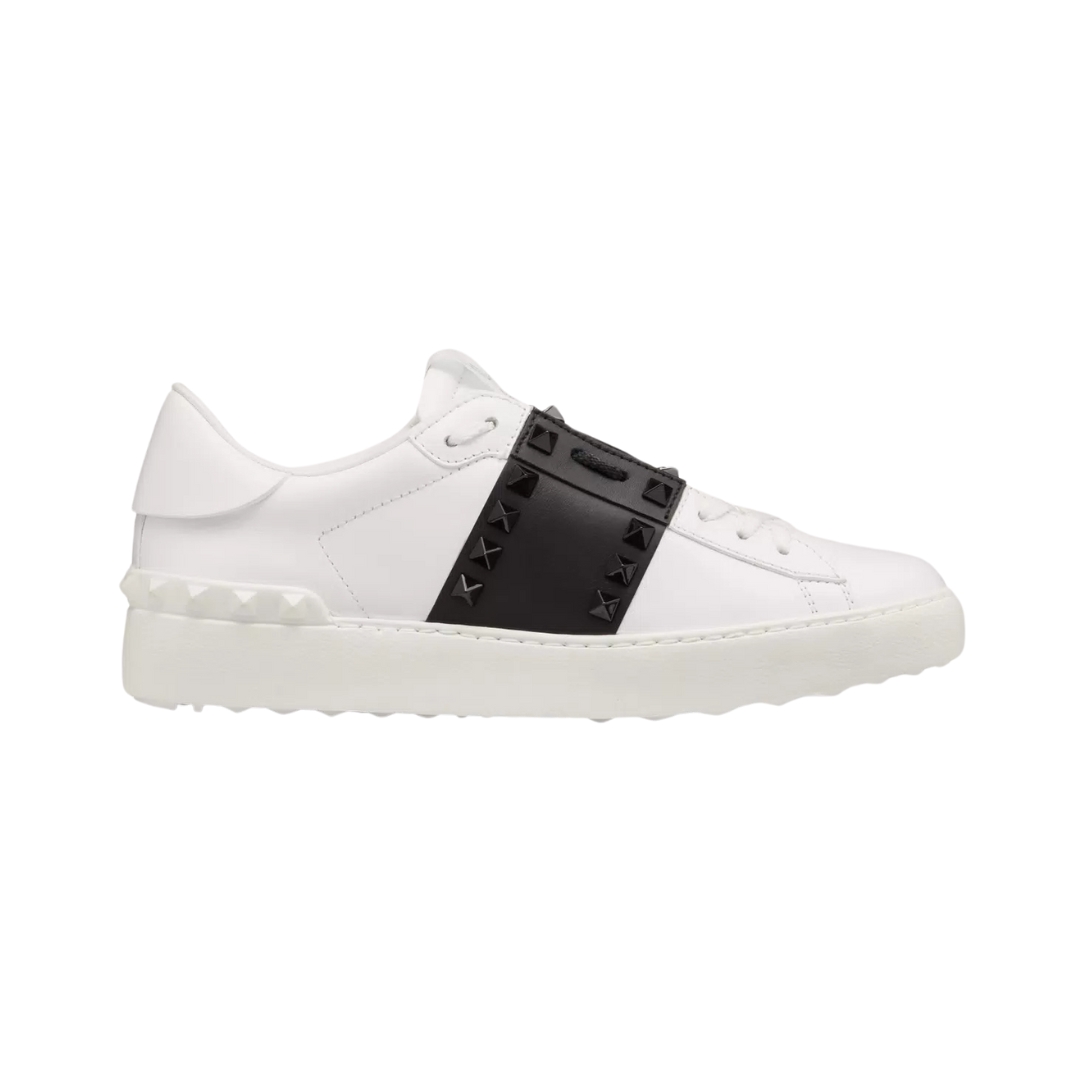 Sneakers Valentino in pelle bianca con fascia nera e borchie ton sur ton