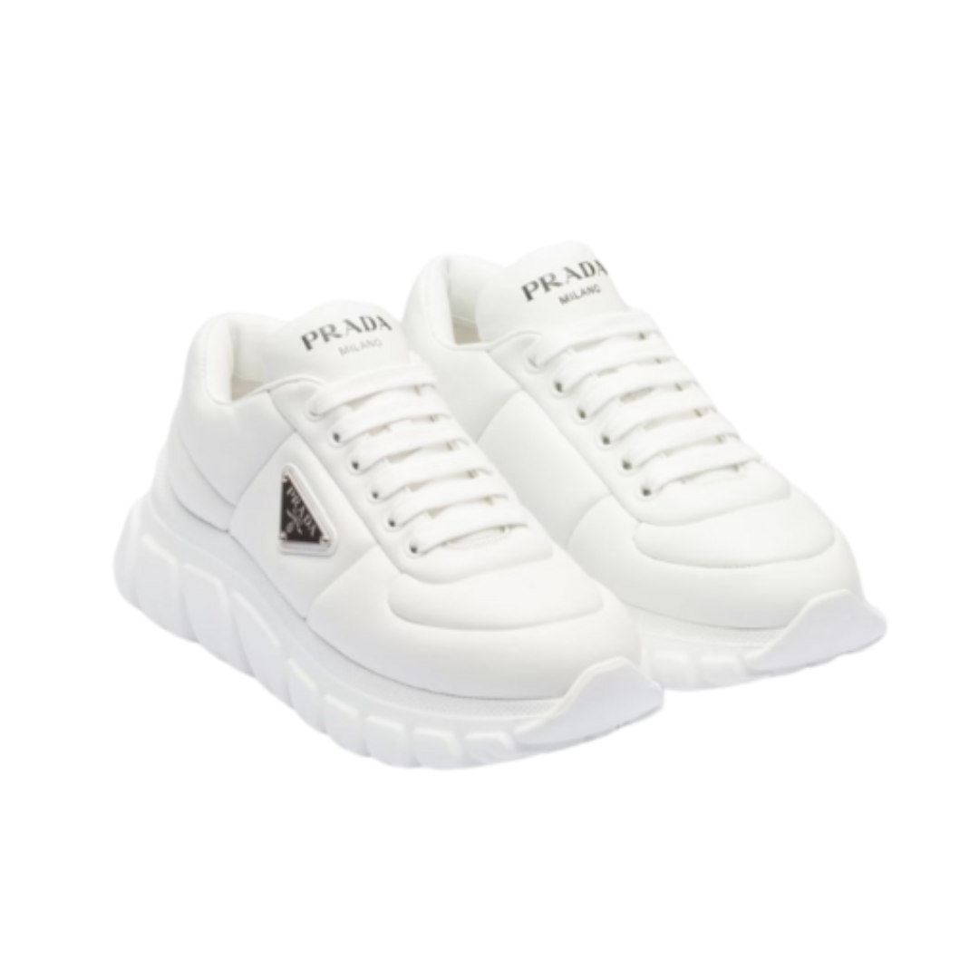Dettagli:● Materiale: pelle liscia● Colore: bianco e nero● Chiusura: lacci frontali● Logo: triangolo Prada laterale● Suola: gomma spessa● Interno: tessuto